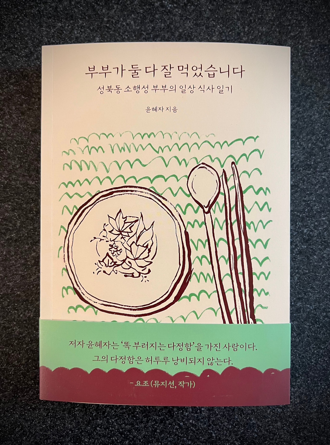 예전에 들었다. '식사 일기'를 쓰고 있고, 1년치가 모이면 단행본으로 펴낼 생각이라고. 드디어 그 책이 나왔다. <부부가 둘 다 잘 먹었습니다>(몽스북, 2023). 3년 전에 출간돼 화제가 됐던, 베스트·스태디셀러의 반열에 오른 <부부가 둘 다 놀고 있습니다>(몽스북, 2020)와 제목이 깔맞춤이고, 출판사도 같은 곳이다.