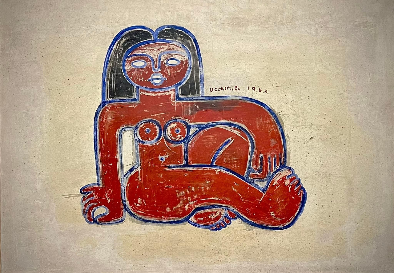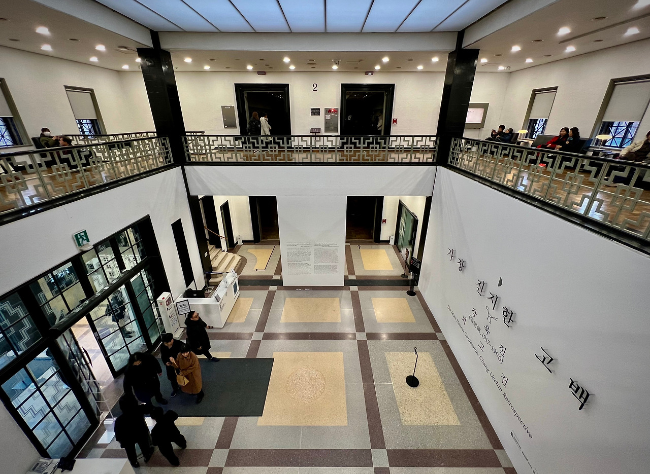 첫 번째 작품은 리움미술관에서 소장하고 있는 <여인 좌상 Woman>(1963)이라는 그림이다. 이번에 전시된 작품 가운데, 이런 스타일의 그림은 못 본 것 같다. '까치' 그림들과는 정반대의 희소한 그림이었다. 전체를 붉은 색으로 채운 다른 그림도 <나무·새木·鳥 Tree and Bird>(1963) 정도 뿐이었다. 공교롭게도 <여인 좌상>과 <나무·새木·鳥>가 1963년 작품이다. 그 즈음에 어떤 일이 있었나, 연보를 찾아봤다.