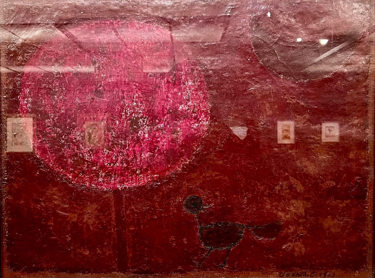 붉은 색을 주조로 나무와 새, 달이 어우러지는 풍경을 그렸다. 붉은 밤이라는 것 부터 현실적이지 않고, 단순화된 나무와 달, 새의 모습에서 60년대 초반 진행됐던 추상화의 경향을 엿볼 수 있다. 그 가운데 둥근 나무는 채도가 높아 마치 빛나는 태양처럼 보이는데, 이 때문에 나무는 나무이면서 동시에 달과 함께 떠 있는 해가 되었다.
