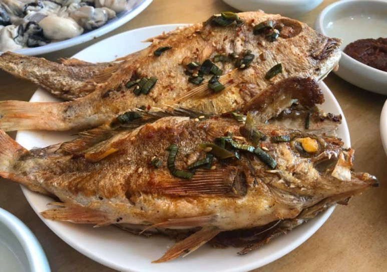 가게 안으로 들어서며 주인장과 손님들을 둘러보니, 30년 전통의 음식점 포스가 팍팍 느껴진다. 알 굵은 통영 굴. 여기선 '꿀'이라고 발음한단다. 생선구이정식에 나오는 꽃돔, 조기, 열기, 고등어가 모두 생물.