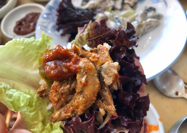 찬으로 나온 멸치회는 또하나의 요리. 나머지 찬들도 과하지 않은 양념에 맛깔스럽다. 멸치지짐에 쌈 싸먹는 것만으로도 공기밥 하나 순삭일 듯. 입가심 숭늉도 융숭한 대접을 받는 느낌. 생굴회 2만원, 생선구이정식 1만3000원(1인분).