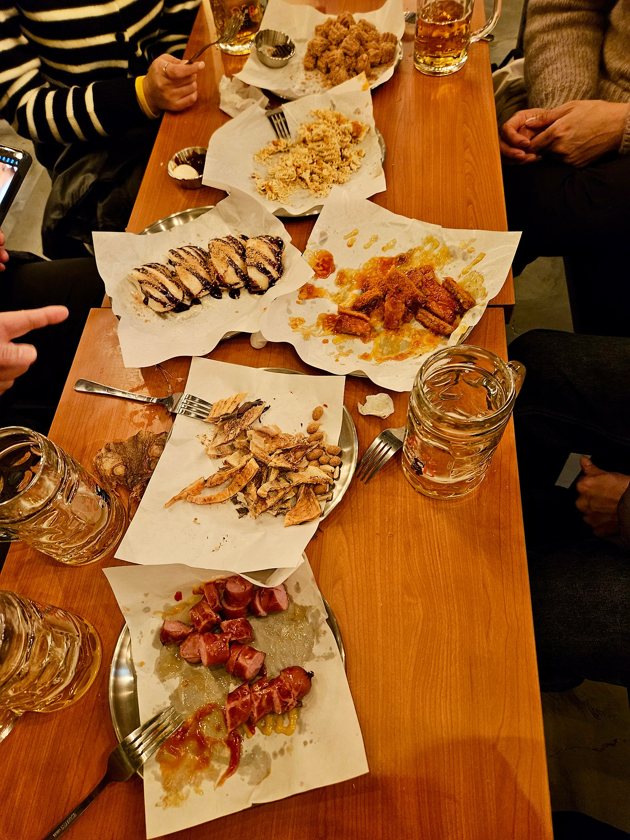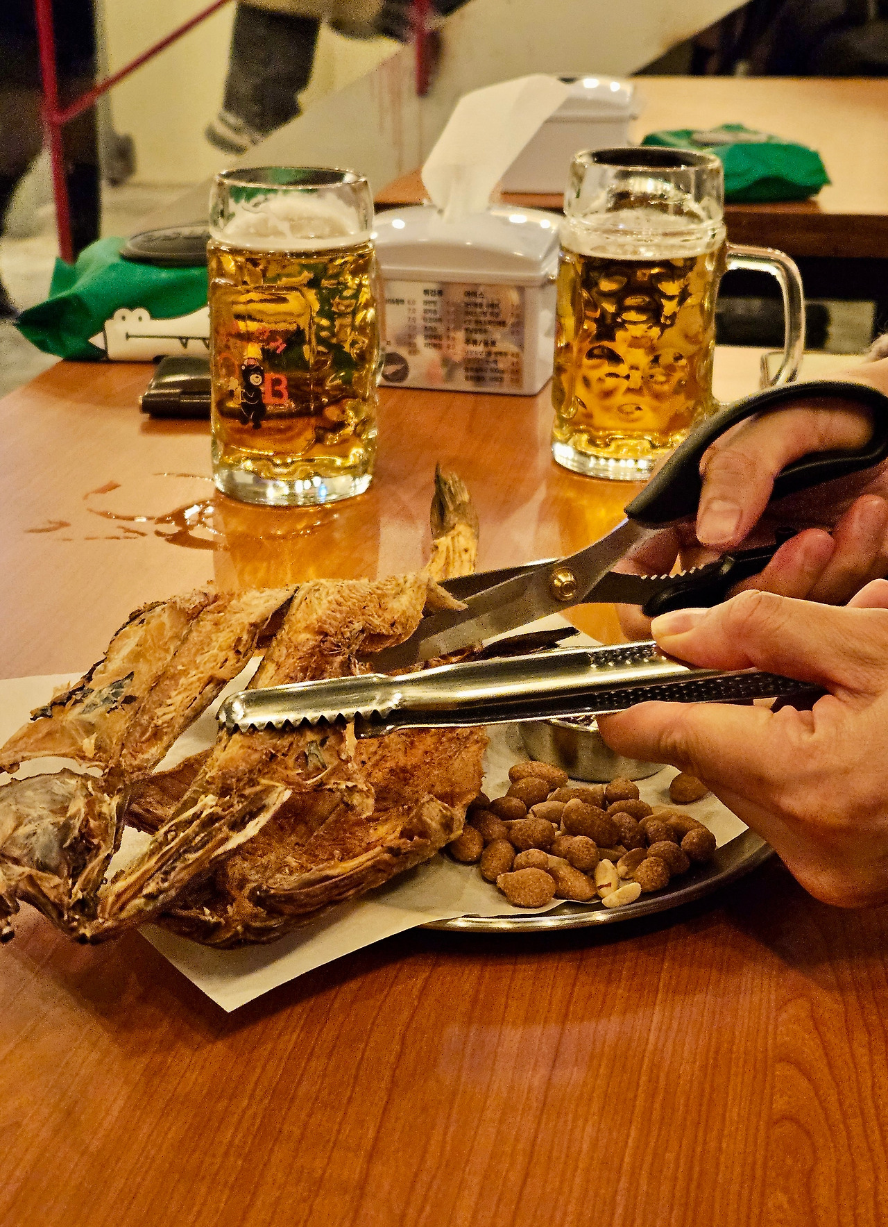 귀환한 '을지OB베어'는 지하철 을지로3가역 9번과 10번 사이에 있다. 지상 1층과 지하가 연결된 복층이다. 지상 1·2층 복층보다 더 안정감 있고, 포근한 느낌이다. 인테리어나 실내 분위기는 이전과 사뭇 다르다. 규모도 무척 커졌다. 다양한 안주도 젊은층 입맛에 맞춘 듯하다. 나중에 계산해보니 가격은 혜자. 젊은층 손님들도 많다.