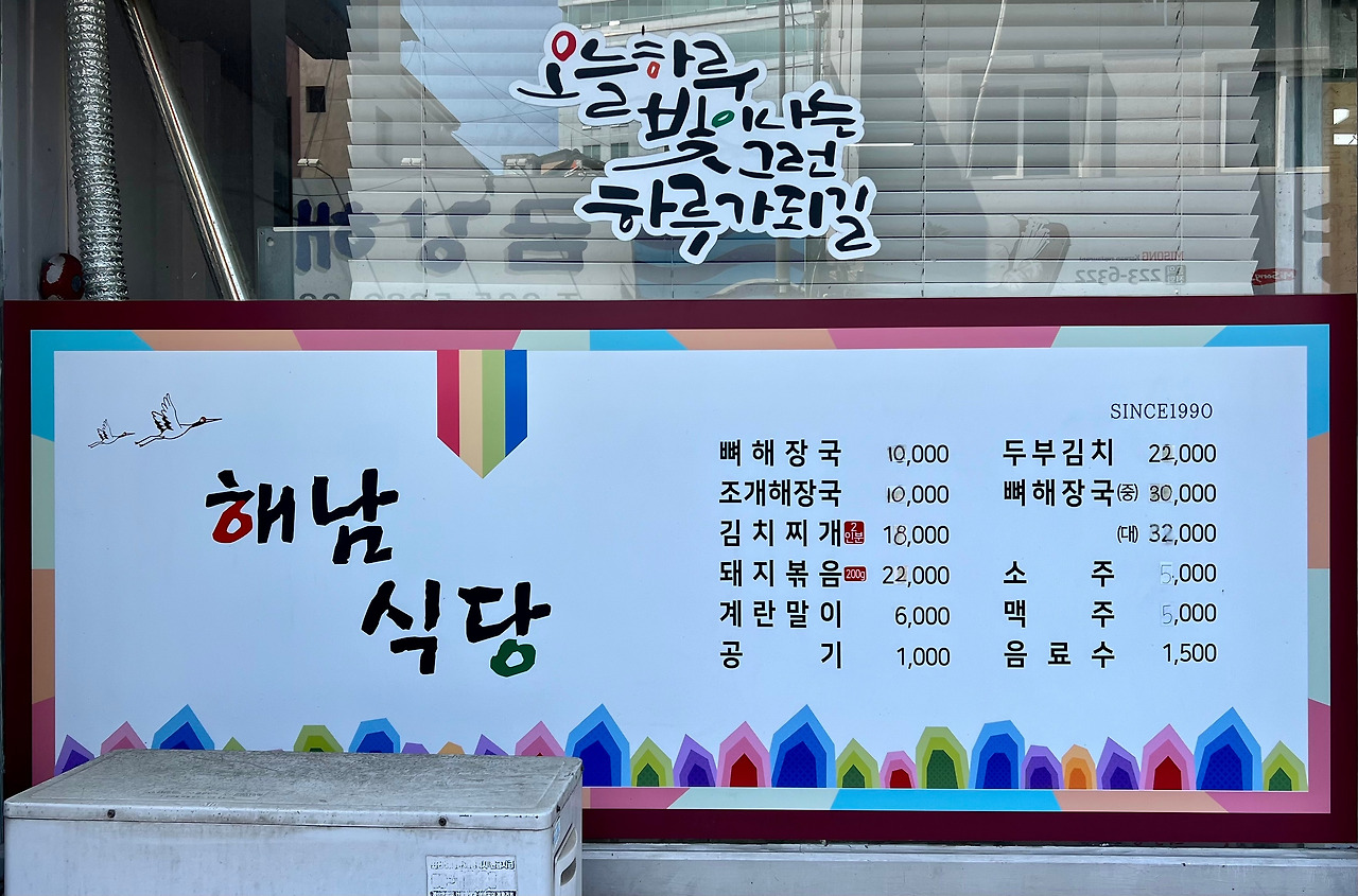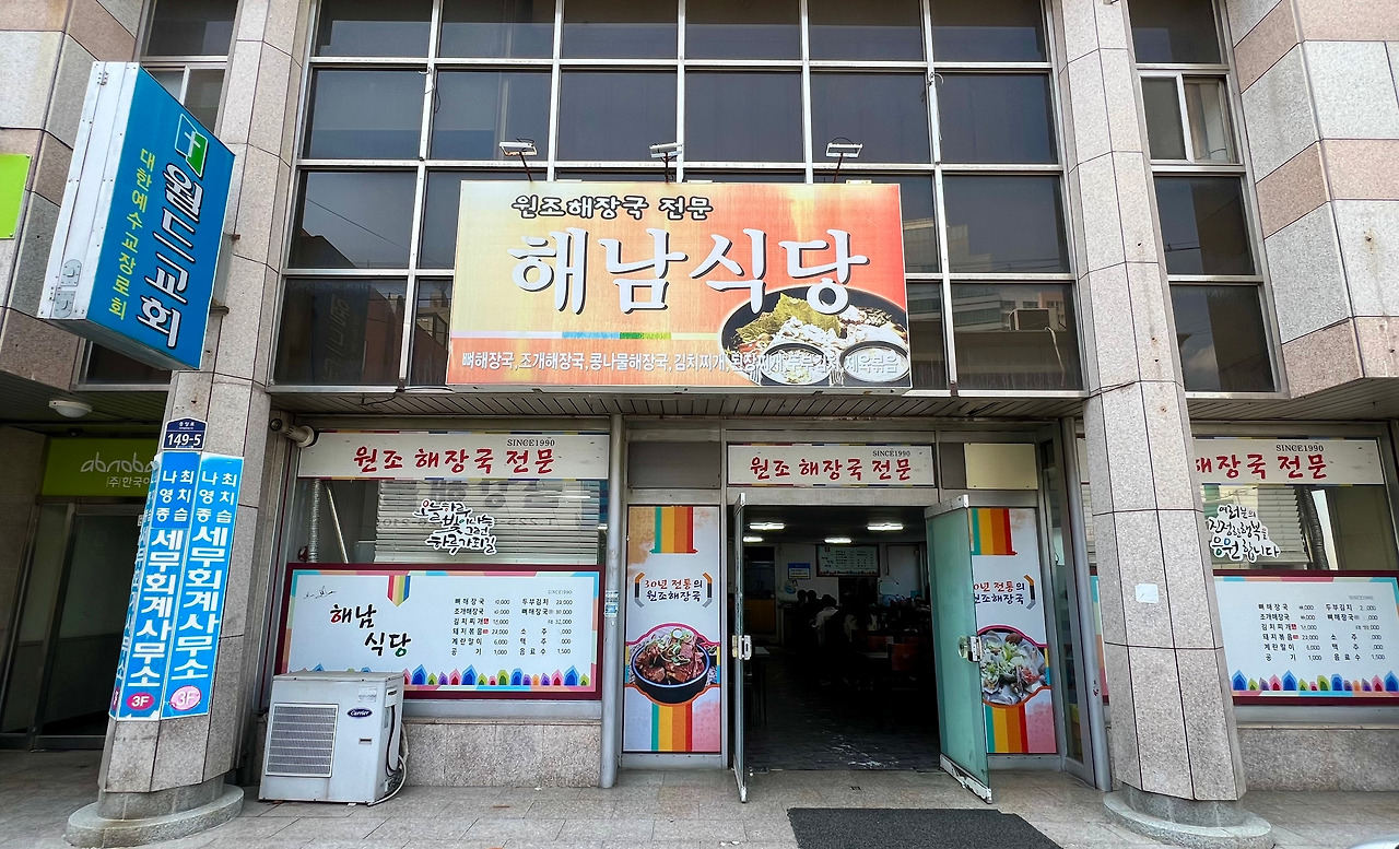 오랜만에 광주에 내려가 지인들과 술 한잔 하다보니, 다음날 해장이 필요했다. 어딜 갈까 고민하다가 검색해서 찾은 곳이 <해남식당>. 메뉴 가운데 '조개해장국'이 확 눈길을 끌었다. 바지락 조개가 산더미다. 건져도 건져도 끝이 없다. 조개 국물이 너무 진해 짜게 느껴질 정도다. 다른 테이블에서는 뼈해장국도 많이 먹고 있었다. 광주에 사는 지인의 애기로는 <해남식당>은 김치찌개와 계란말이가 끝내준단다.