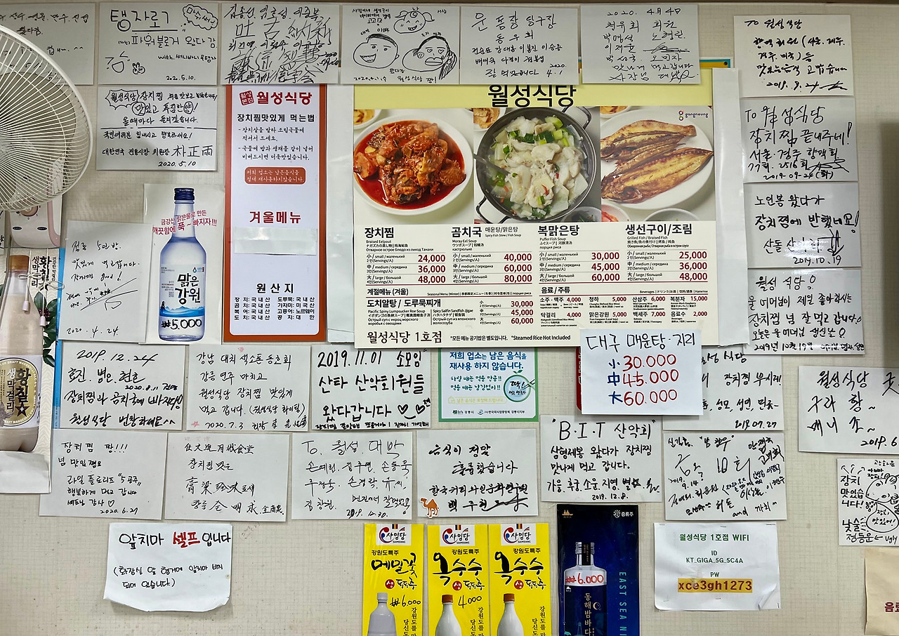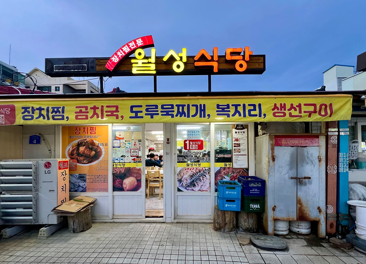 주문진 수산시장의 <월성식당>. ‘장치찜’으로 유명한 곳. 장치? 궁금해서 찾아봤더니, 자세한 설명이 거의 없다. 간신히 찾은 출처 불명의 설명을 보니 “야구방망이처럼 생긴 물고기”리며 “큰 장어로 오해하기 십상”이란다. 예전엔 동해안에서 흔했는데, 지금은 귀하단다.