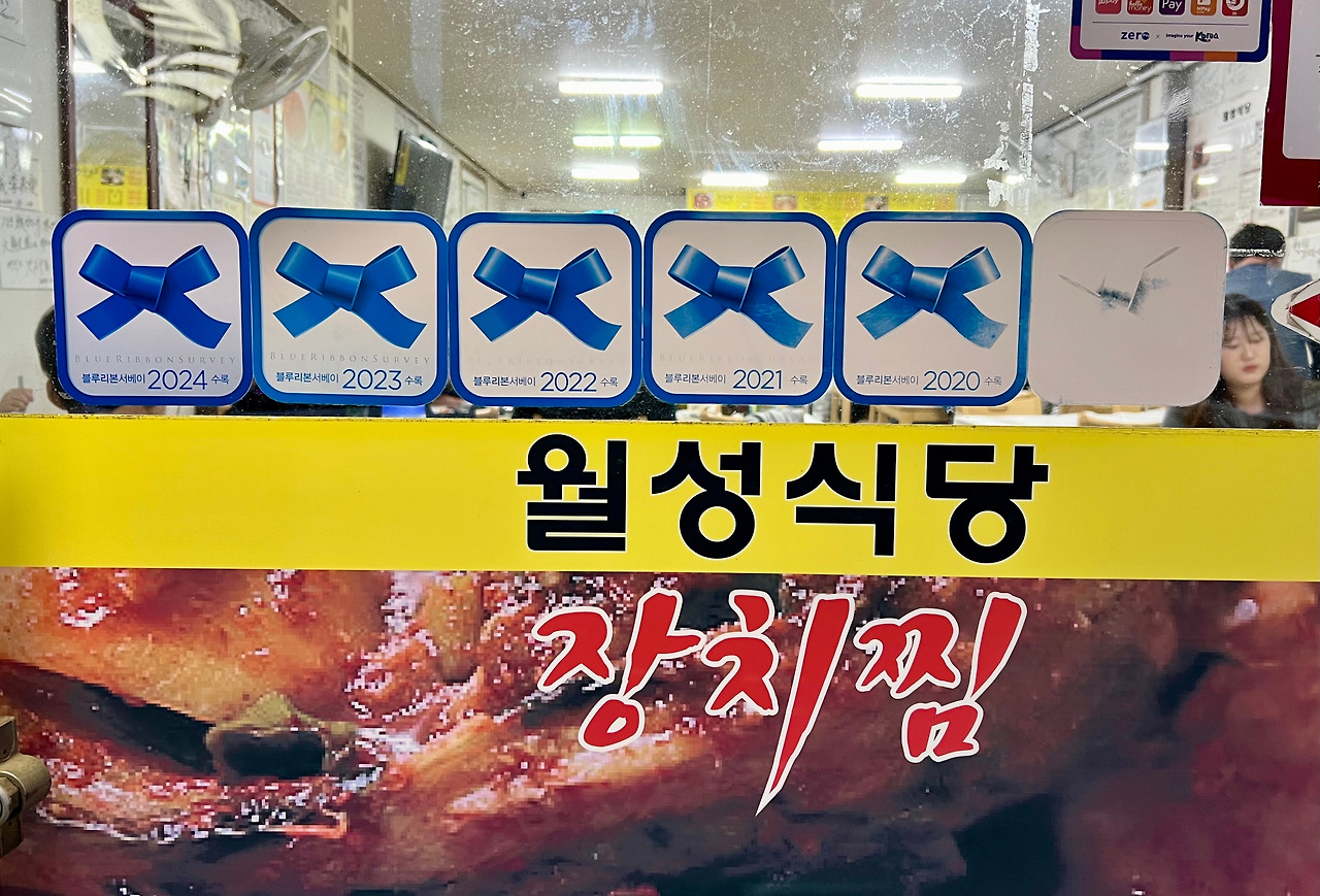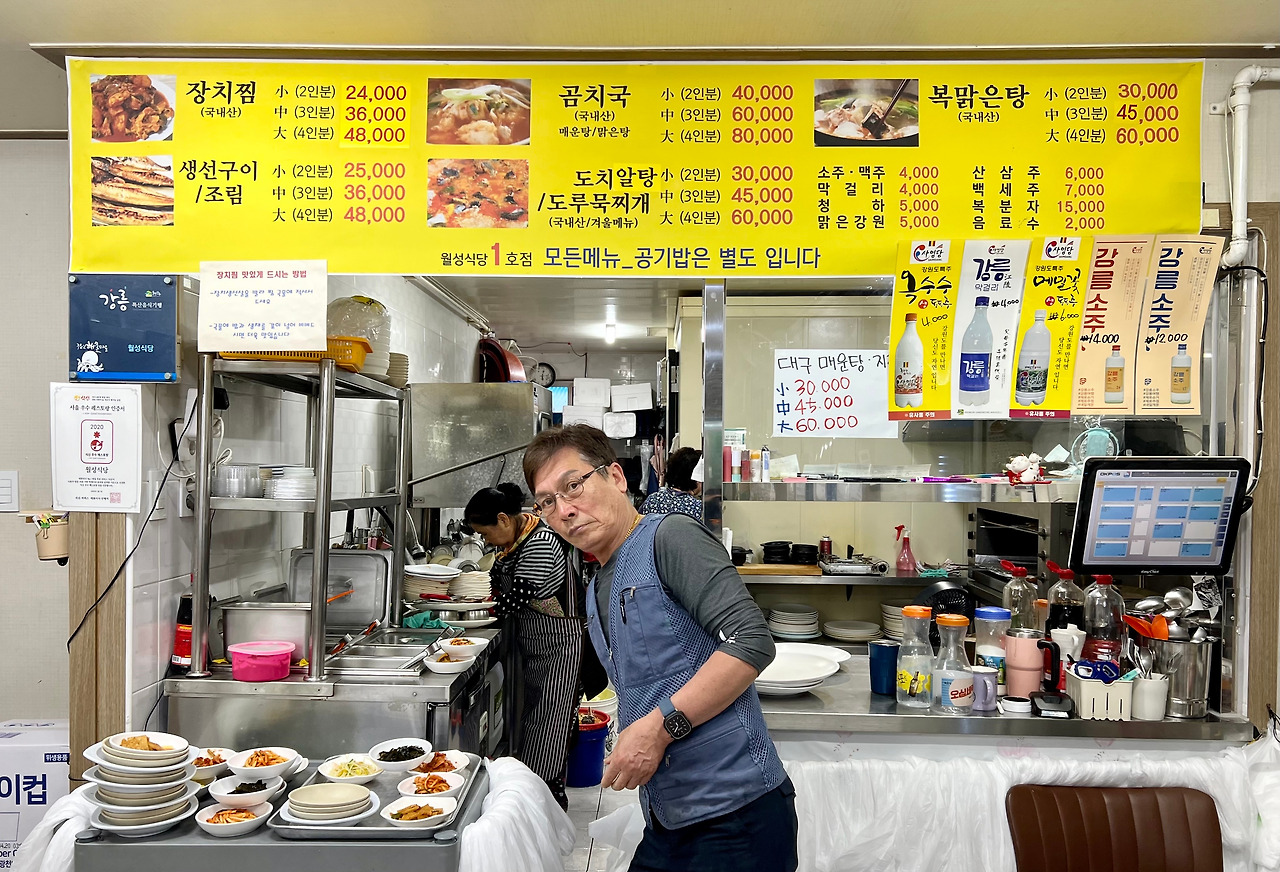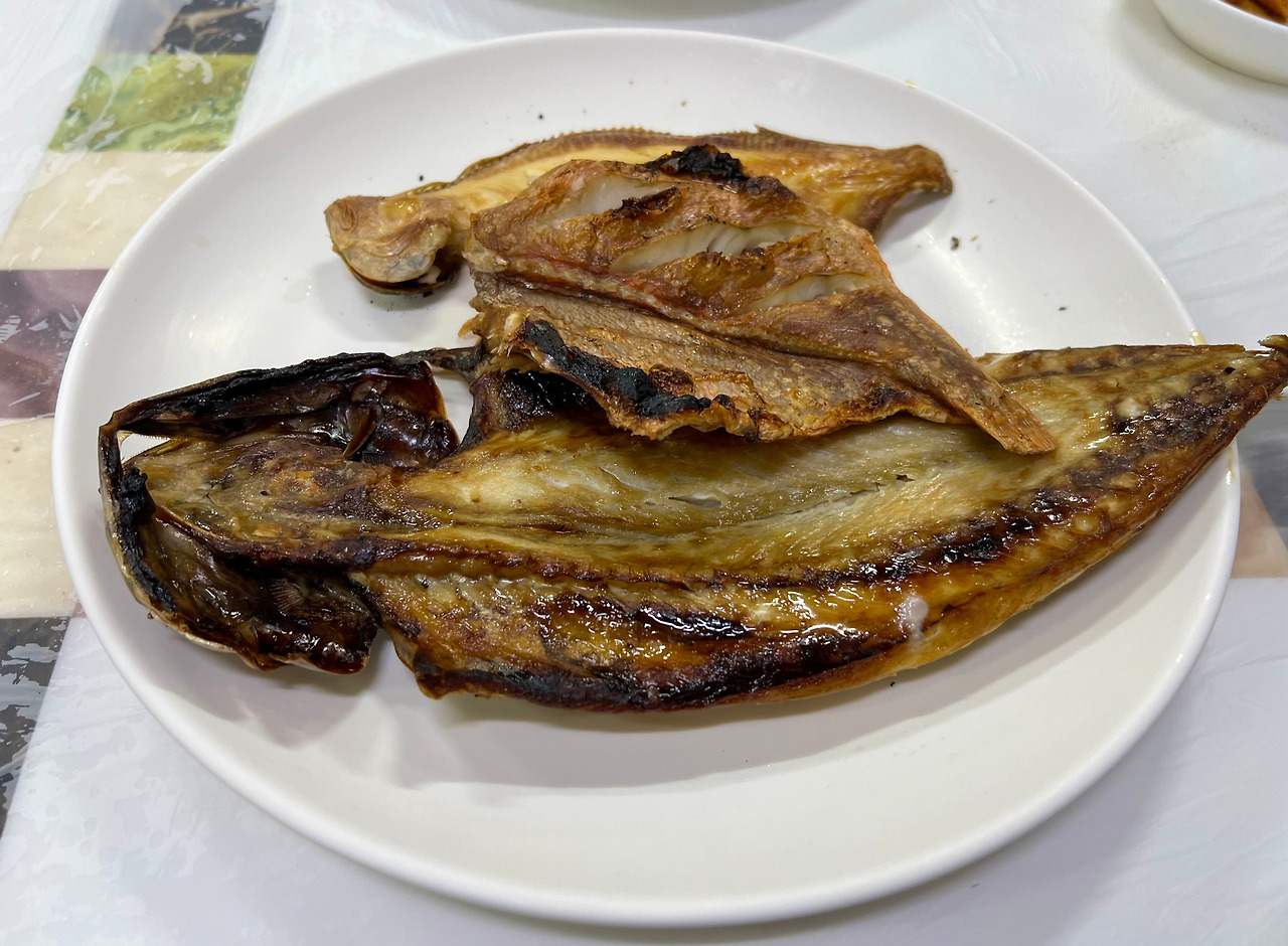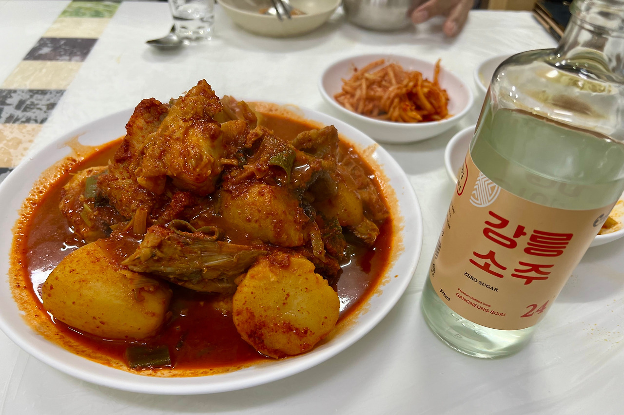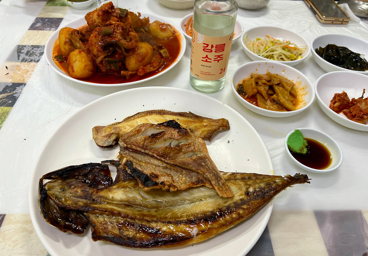 <월성식당>은 <수요미식회>에도 소개됐고, 여러 해 연속으로 ‘블루리본’을 받은 집. 장치찜(소, 2만4000원)과 생선구이(소, 2만5000원)에 24도짜리 ’강릉소주(사임당)‘를 시켰다. 장치찜은 쫄깃하면서 담백한 살맛이 일품이다. 소스 또한 넘치지도 부족하지도 않은 적정선의 맛을 지켰다. 생선구이는 열기와 고등어. 종합점수는 A.