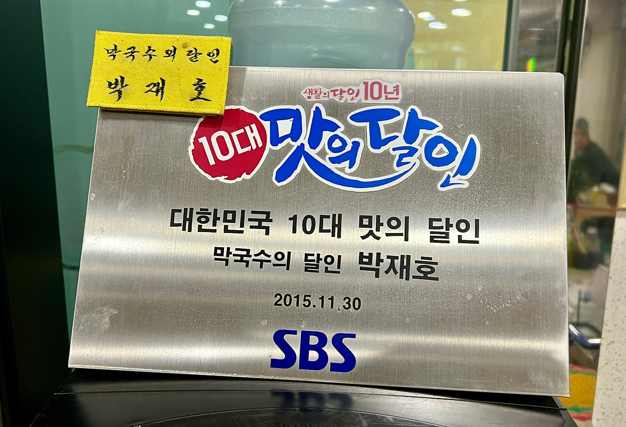 이 가게 박재호 사장님은 SBS <생활의 달인> 막국수 최강달인으로 선정된 분. 게다가 2015년 11월 30일 <생활의 달인> 10년 기념, '10대 맛의 달인'에서 막국수의 달인으로도 뽑혔다. <생달> 팬들은 알겠지만, 이게 훨씬 더 어렵고 대단한 타이틀이다. <생활의 달인> 선정 기념 대형 액자를 살펴보니 반가운 얼굴이 등장. 맛칼럼니스트 황교익 쌤. ^^