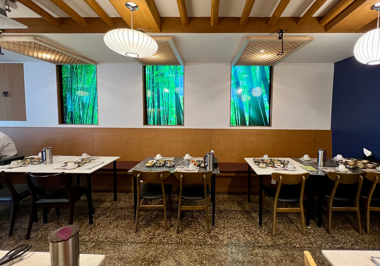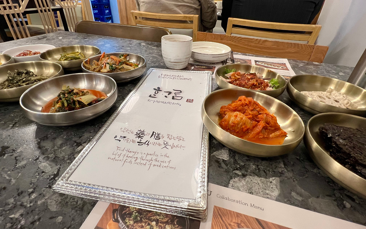 지난 2월에 불이 난 뒤 대대적인 공사를 마치고, 4월 중·하순에 다시 문을 연 약선한정식 <한가람>. 어제 휴가여서 고교 써클 선후배와 함께 점심식사를 했다. 인테리어를 새로 해서 실내 분위기가 한층 모던해졌다. 음식은 여전히 맛있었다. 내가 작명해준 ‘게눈감추면’이 메뉴판에 정식 명칭으로 표기돼 있어 반가웠다. '비건맞춤한상'도 눈에 띄었다.