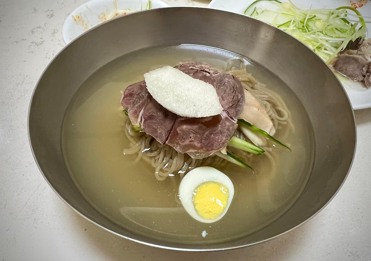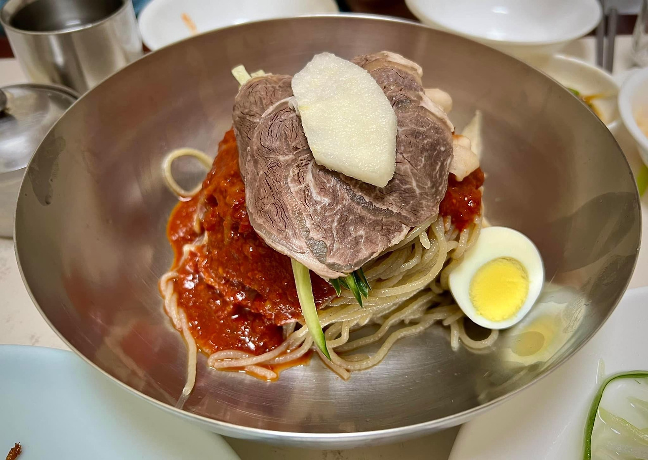 비빔냉면에 수육을 싸먹으면 이보다 더 훌륭한 안주를 찾기 힘들 정도로 술과의 궁합이 좋다.