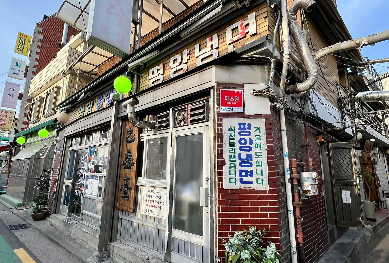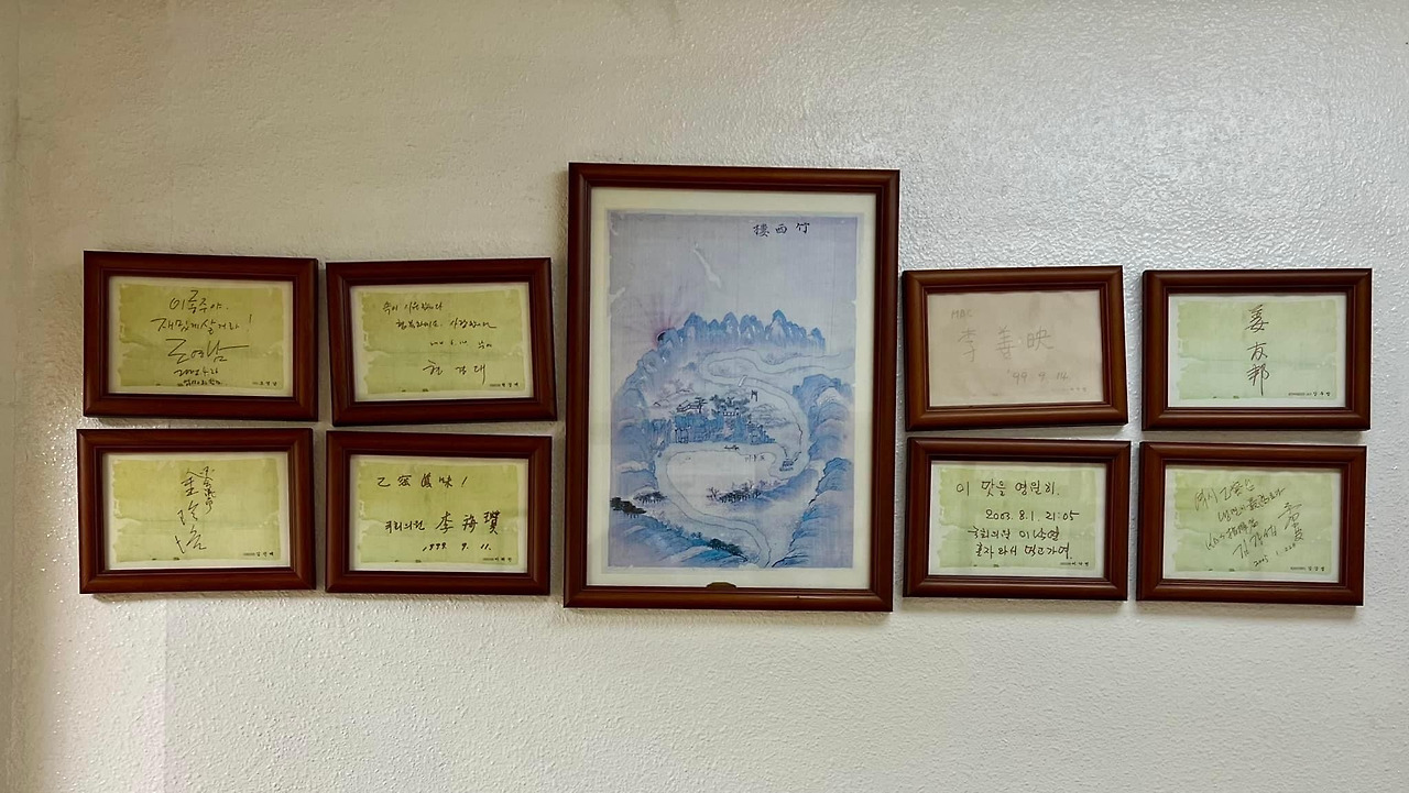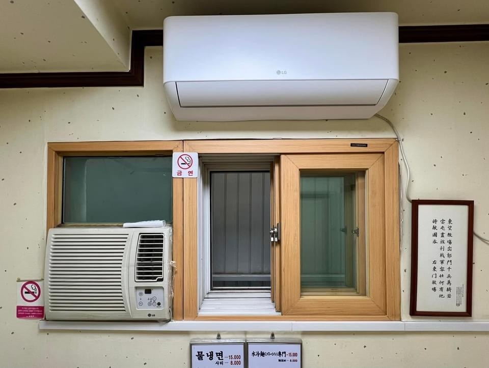 엊그제 <을밀대>에서 냉면과 수육. 김형민 PD 덕분에 단독방에서 옥근태 PD와 함께 편안하게 이런저런 얘기 나누며 즐거운 시간을 보냈다. 방 안의 오래된 에어컨은 랩핑해서 세월만 보여주고, 시원함은 새 에어컨이 담당한다. 신구의 조화.