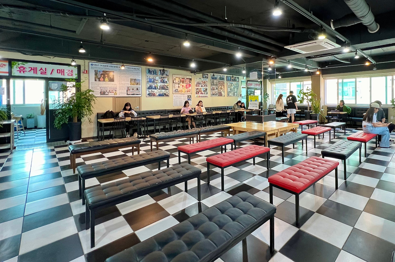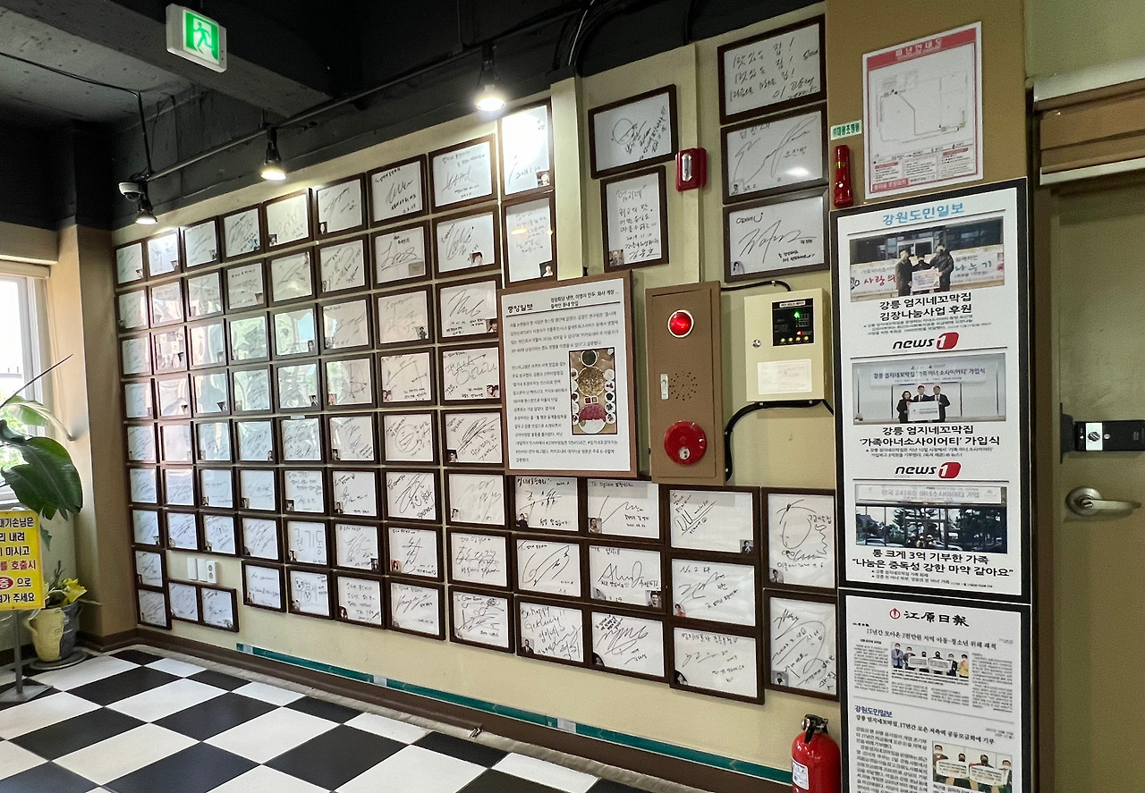 <강릉 엄지네 꼬막집>은 강릉KTX역에서 걸어서 10분 안쪽이다. 처음에는 이곳에 본점만 있는 줄 알았는데, 근처에 2호점과 3호점이 나란히 들어서 있다. 오전 11시에 문을 열어 사실상 오픈런을 했는데도, 본점은 만석에 가까웠다. 번호표를 받고 2층 대기실에 갔는데 깜짝 놀랐다. 대기실이 웬만한 버스 대합실보다 넓었다.