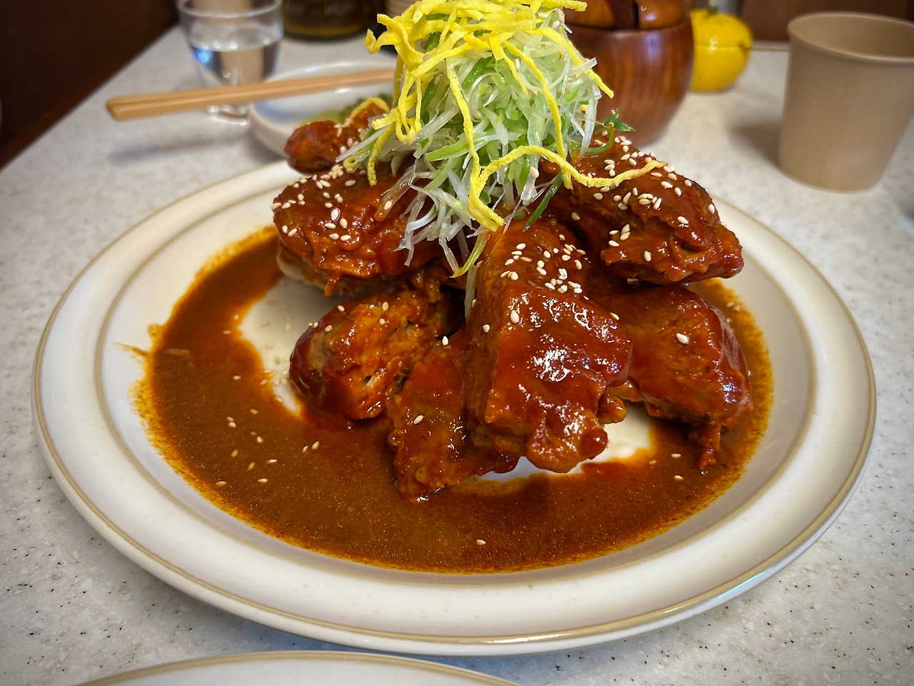 내 입맛에, 육수는 맑지도 탁하지도 않았고 깊이가 무겁지도 얕지도 않았다. 그런데 <백랑>에서 추천한대로 한 번은 유자새우젓, 한 번은 청양고추 오일을 넣고 먹었더니 '신세계'가 펼쳐졌다. 어느 하나가 어느 하나를 누르지 않고 섞여 기분좋은 새로운 맛을 만들어냈다. 짜지거나 과하다는 느낌이 전혀 들지 않았다.