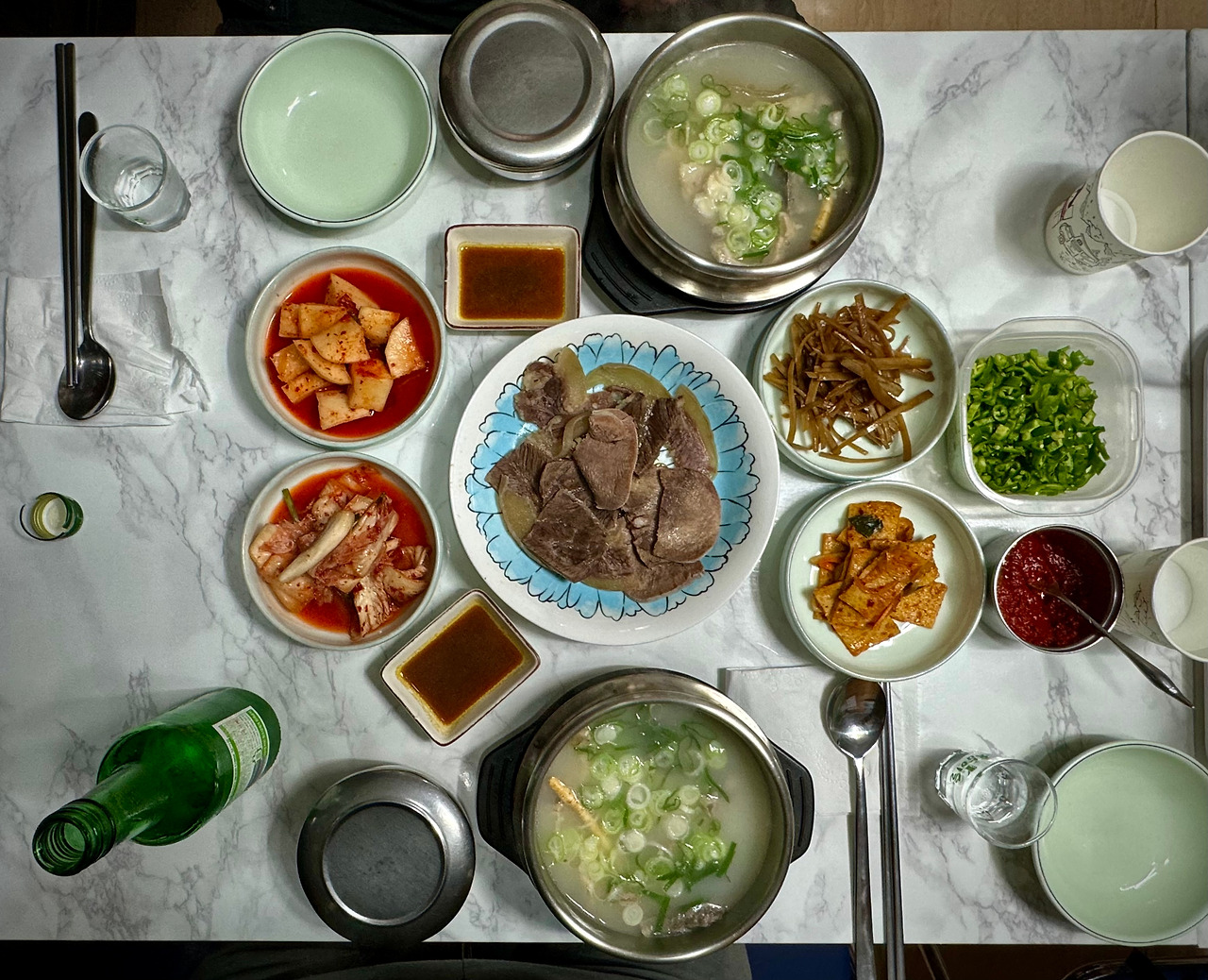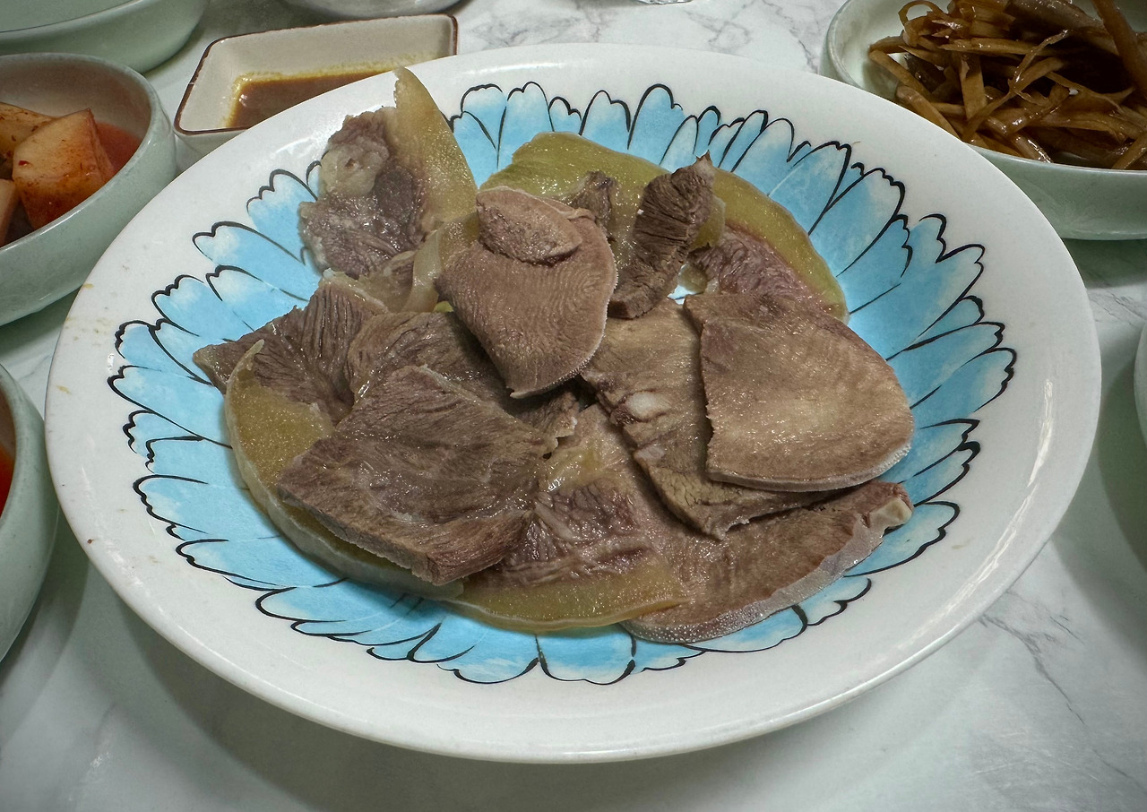 <골목집>의 시그니처인 '소한마리탕(1만3000원)'과 '모듬수육(2만원)'을 맛봤다. 먼저 이 집을 다녀간 이택희 선배 기록에 따르면, "끓인 냄비째 나온 소한마리탕은 뽀얀 국물에 소머릿고기, 우족, 우설, 살이 많이 붙은 뼈(꼬리?), 스지, 양, 곱창, 허파 등 소 한 마리의 모든 부위가 고루 그득하게 들어 있다". 고기나 국물이나 '꾀부리지 않고, 정성을 담은' 음식이었다.