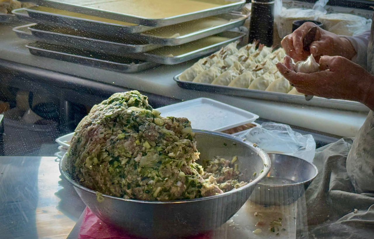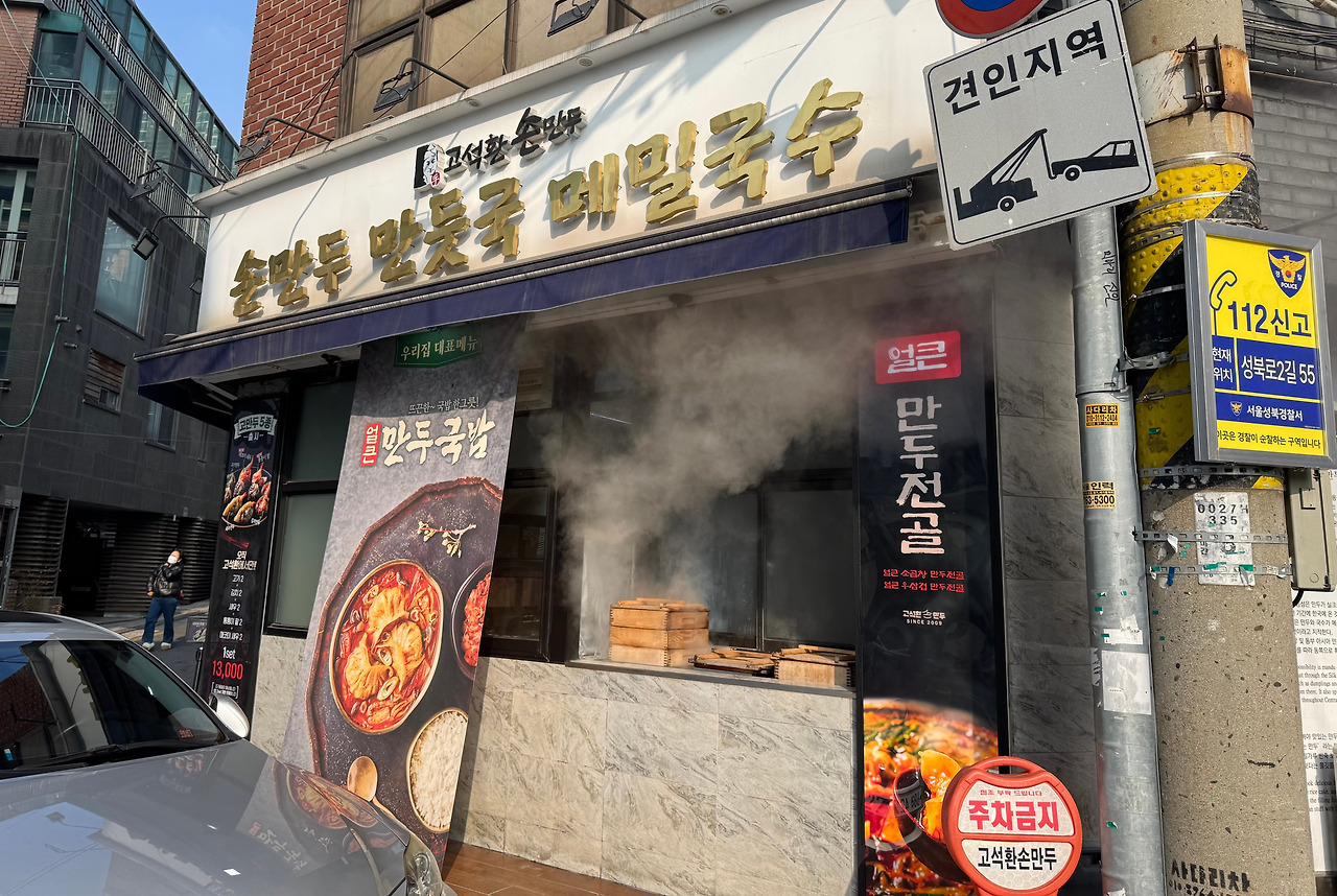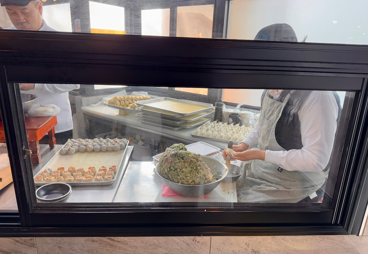 한성대입구역 부근에 있는 <고석환 손만두>. 집에서 그닥 멀지 않고, 이야기를 몇 번 들었던 곳이다. 어제 점심 때 찾아갔다. 들어서자마자 오른편에 쇼윈도 주방 안에서 두세 분이 손만두를 빚고 있었다. 나중에 직원 분이 그 안의 남자 분이 고석환 대표라고 귀띔해준다. 큰 볼처럼 만들어놓은 만두소가 탐스러웠다.