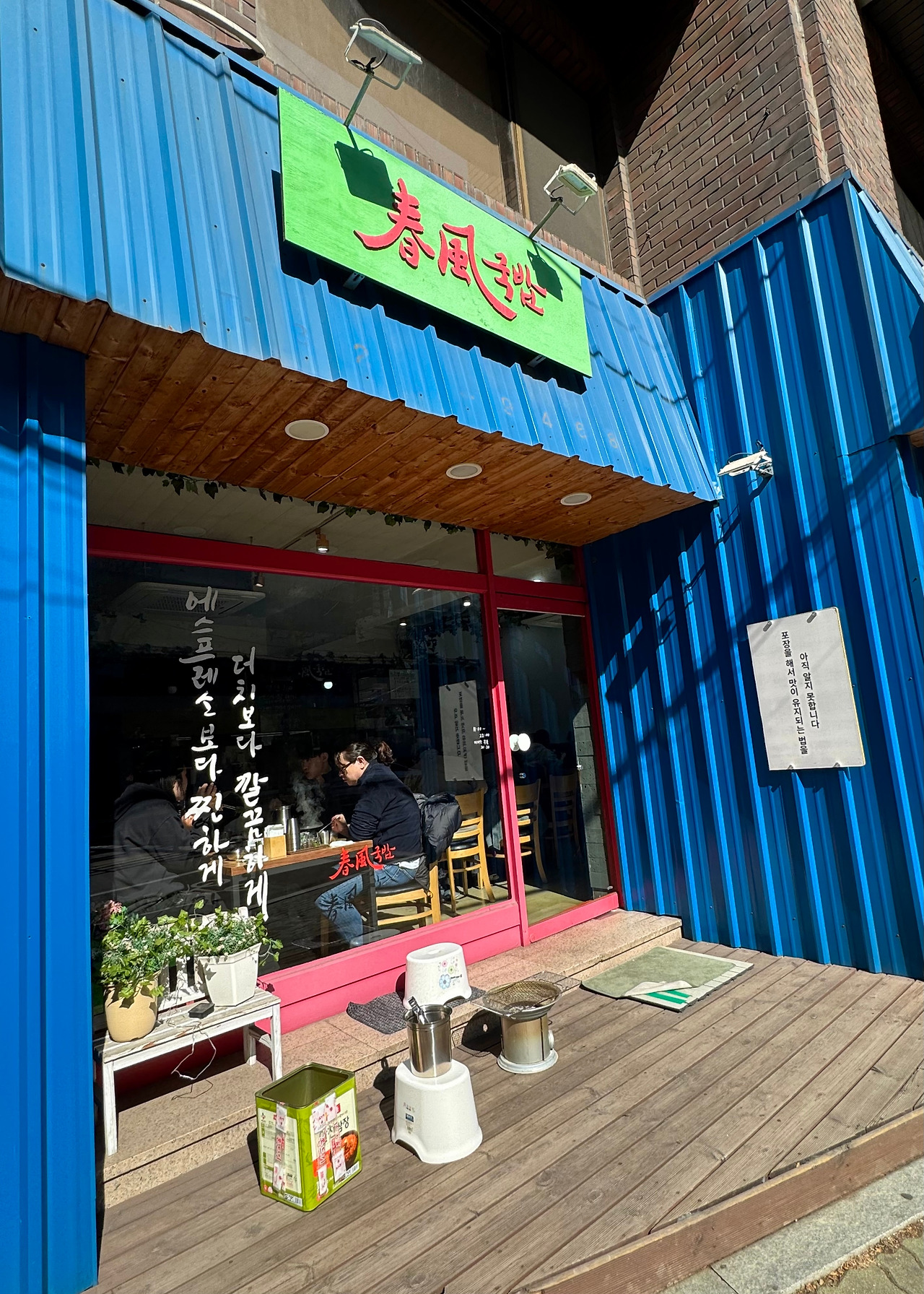 오늘 점심은 서교동 <춘풍(春風)국밥>. 메뉴는 국밥(부산)과 소박한 순대. 부산식 돼지국밥이라는 것 같은데, 현미가 아니라 백미 스타일이라고 보면 된다. 너무 깔끔 담백해 부산식이 아니라 서울 깍쟁이 입맛에 딱 맞는다. 부산식 터프한 돼지국밥과는 거리가 사돈의 팔촌쯤 된다.
