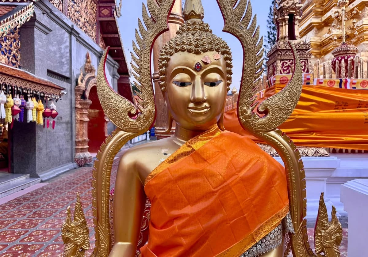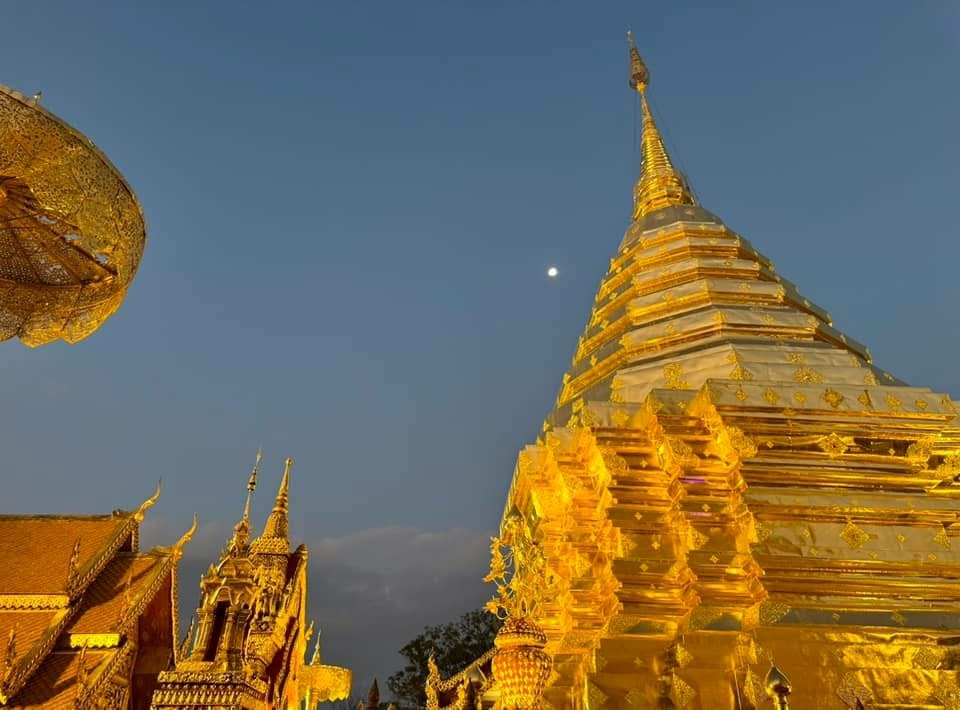 입구를 지키는 두마리의 거대한 나가(인도 신화에 나오는 큰 뱀)를 지나 300여 개의 계단을 오르면, 도이 수텝 중턱 해발 1035m 높이에 자리한 황금빛 사원을 만날 수 있다. 란나왕조 시대 때 수코타이 승려가 가져온 부처의 유골을 모시기 위해 사원 터를 찾던 하얀 코끼리가 세 번 울고 숨을 거둔 장소에 지어졌다는 전설이 전해진다. 태국 북부지역을 대표하는 사원으로 유명해 항상 많은 관광객들이 찾는다. 또한 매년 여름에는 부처의 탄생을 기리는 '비사카 부차 데이' 축제도 열린다.