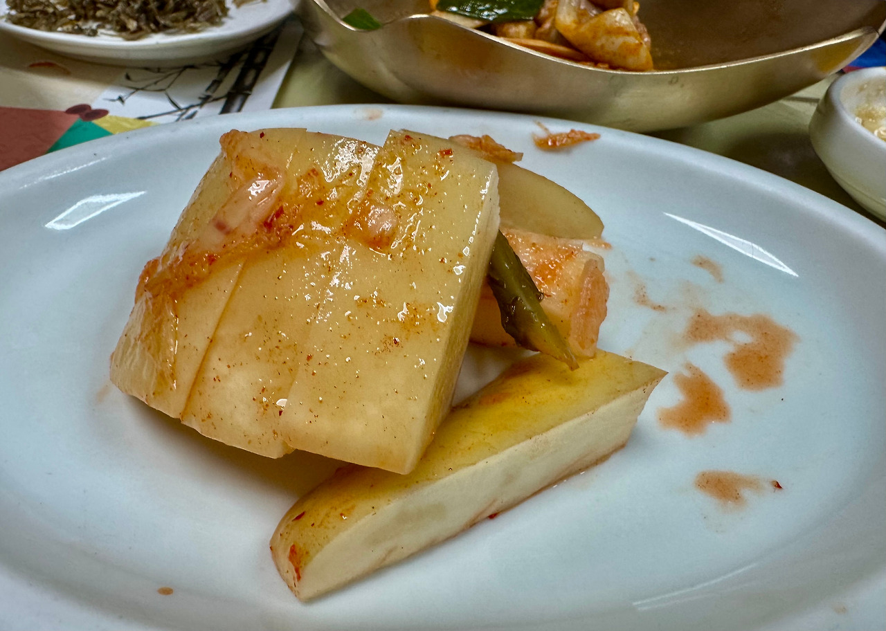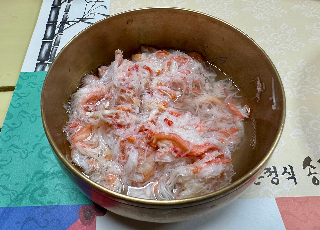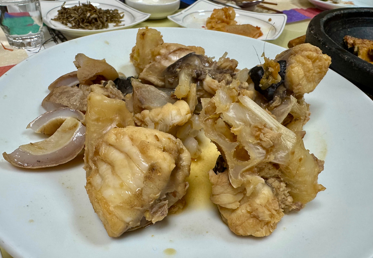 그런데 <향연>의 음식은 그렇지 않았다. 한 사람에 한 마리씩 내준 튼실한 병어찜에 울진 대게살, 완도 전복에 송이버섯, 소고기 육전에 고소한 홍어애, 배추/무 김치에 딸기까지. 가짓수나 모양보다는 식재료 본연의 맛에 충실했다. 이런 한정식집은 참 좋다.