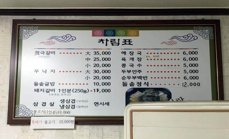젓국갈비 가격은 소 2만원, 중 2만5000원, 대 3만5000원. 어른 3명이거나, 어른 2명과 아이 2명이면 '중'이면 된다. 또 다른 대표 메뉴라는 무낙지는 맛을 보지 못했고, 돌솥굴밥은 철이 아니라 아직 내질 않는다. 올해 초 장소를 근처로 옮긴 듯한데, 초행인 사람은 한 번에 찾기 쉽지 않다. 주차는 각자도생.