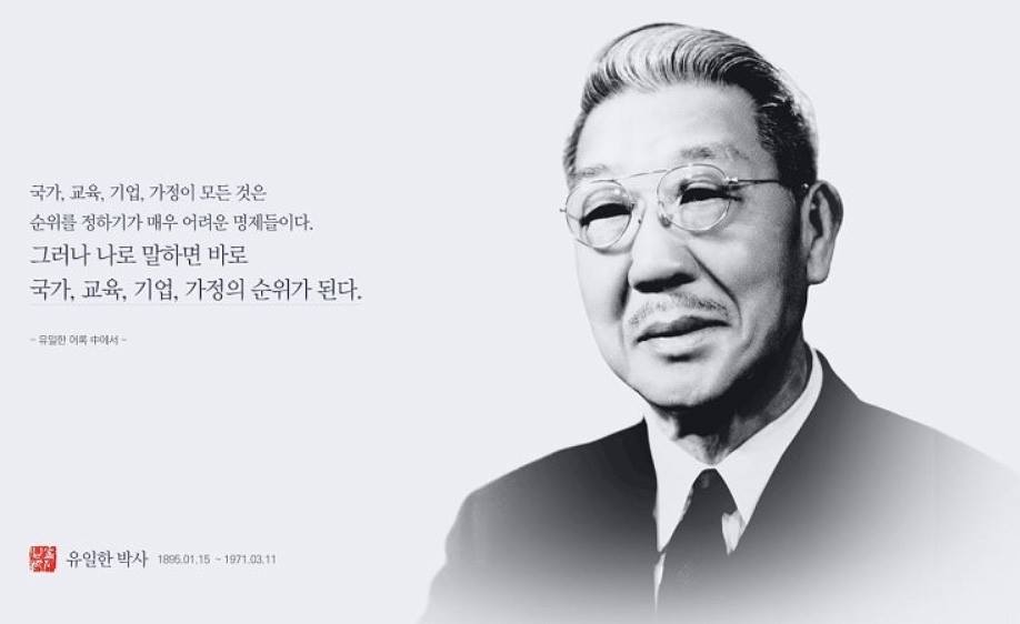 "기업에서 얻은 이익은 그 기업을 키워준 사회에 환원"해야 하며, "무엇이 더 중요한지 만약 순위를 정해야 한다면 국가, 교육, 기업, 가정 순"이라고 믿었던 유일한 박사. 평소 입버릇처럼 되뇌였던 '기업이윤의 사회환원'의 최종 목표는 결국 '국가와 교육에 대한 재투자'였던 것이다.