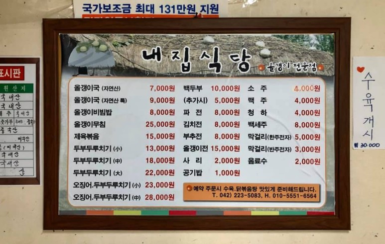 또 오랜 시간이 흘렀고, (2019년 11월) 지난주 토요일 처음으로 <내집>에서 올갱이국으로 해장 겸 점심식사를 했다. 제육볶음과 두루치기, 여러 전도 있지만 이 집의 메인은 올갱이 요리다. 올갱이국, 올갱이비빔밥, 올갱이무침, 올갱이전 등.