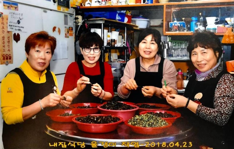 <내집>에서는 국내산 올갱이만을 취급한다. 섬진강, 금강 등 다양한 곳에서 채취한 올갱이를 받아 해감한 뒤 삶고, 옷핀으로 일일히 하나하나 속살을 빼낸다. 식당 문을 열기 전, 손님이 뜸할 때는 부업으로 인형에 눈알 붙이듯 다같이 모여앉아 올갱이 속살을 빼내는 진풍경을 볼 수 있다.
