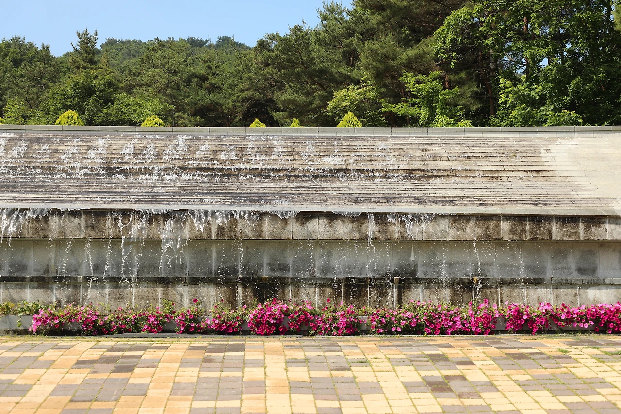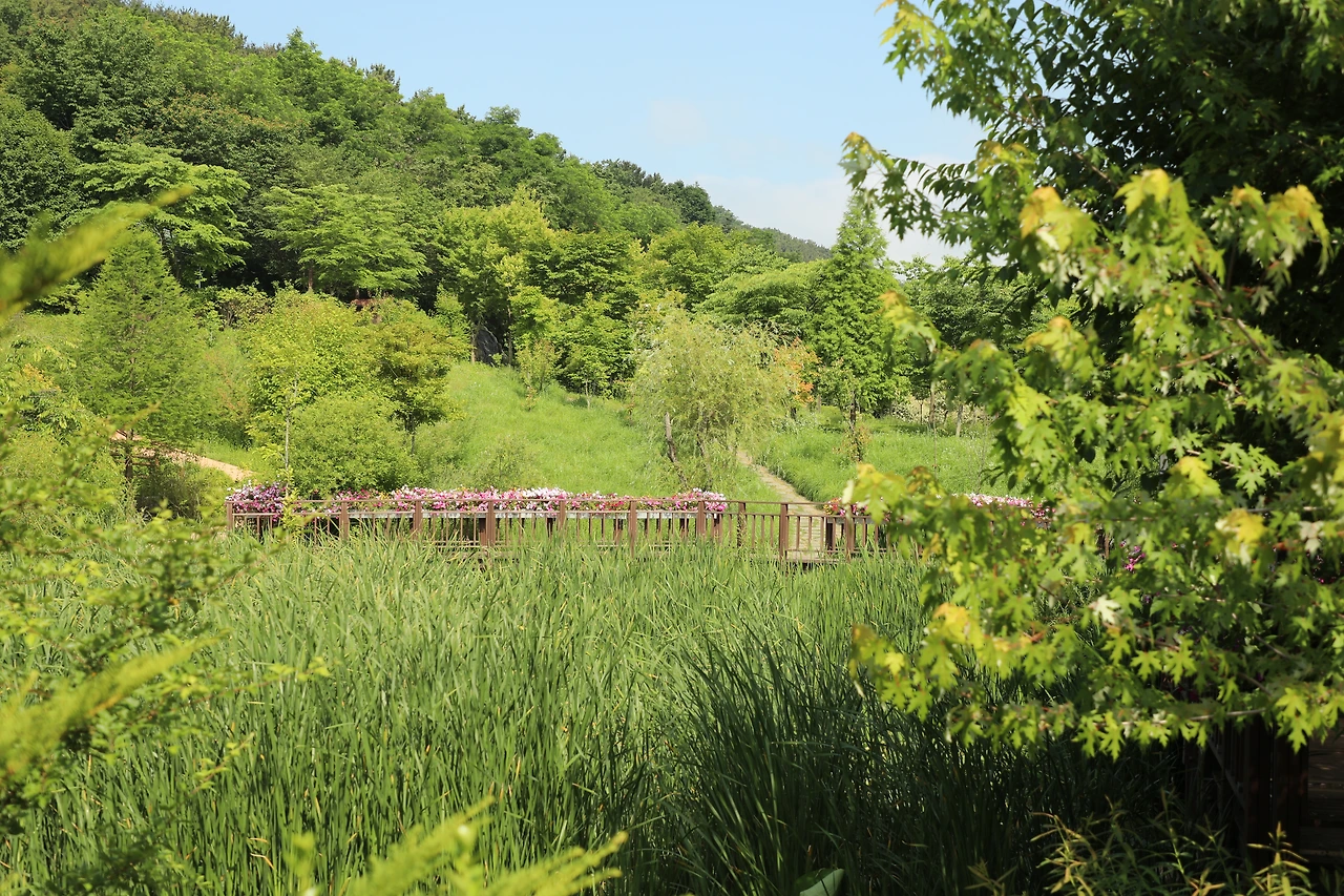 최장 거리 4km 바다를 즐기기 위한 길을 중심으로 걷기로 했다. 즐거운 꽃들과 시원한 나무 그늘이 산책로를 가득 메웠다. 수목원을 감상하는 나만의 한가지 거를 수 없는 습관이 있다. 쉼터가 있으면 잠시라도 앉았다 가는 것이다. 수목원에서 쉼터는 가장 전망이 좋고 신선한 바람이 드나드는 곳에 있기 마련이기 때문이다. 커피도 괜찮지만 시원한 물 한 컵 마시고 나면 몸마저 싱그러워지는 느낌이다. 졸졸 흐르는 냇가의 다리를 넘나들고 쉼터에 걸터앉아 바닷바람을 맞는다. 염전을 개간한 논과 바다의 풍경을 바라보는 것만으로 몸과 마음이 맑은 물로 씻겨지는 듯하다. 특히 암석원 앞의 쉼터에 앉아서 보는 섬 사이로 마치 강처럼 흐르는 바다의 풍경은 한적함의 극치다.