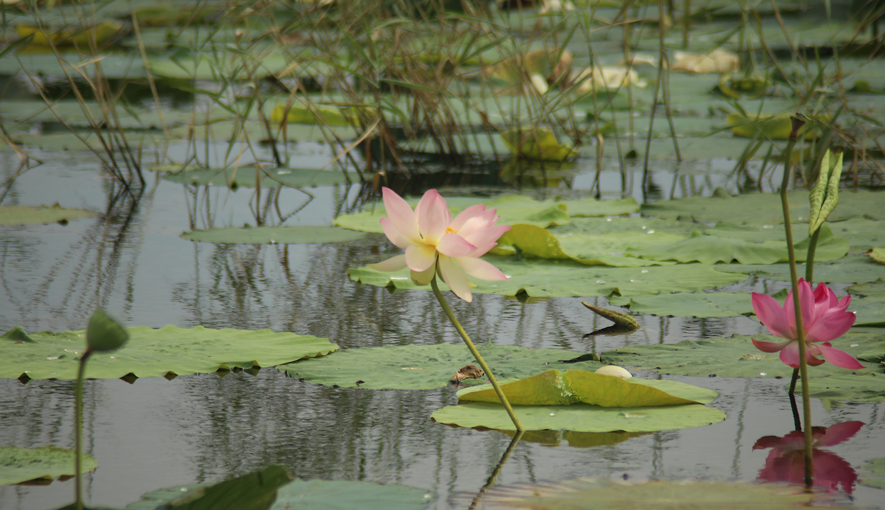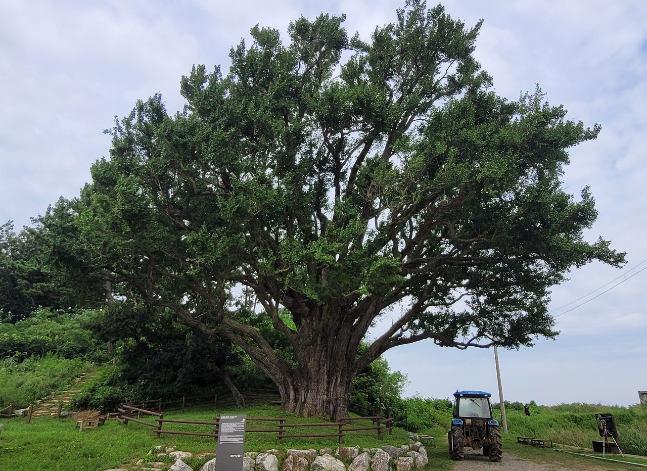 볼음도를 지켜주는 은행나무를 찾아 나섰다. 연꽃이 만발한 볼음 저수지를 지켜보며 서 있는 은행나무는 800년 전에 홍수로 떠내려온 것이라고 전한다. 이 은행나무는 가지를 훼손하면 재앙이 온다는 영적인 나무다 . 둘레가 9m 높이는 25m에 이른다. 1950년대까지 이 나무 아래서 풍어제를 지냈다. 우리나라 천연기념물 460건 중 24건이 은행나무인데 볼음도 은행나무 역시 천연기념물로 지정되어 있다. 혹시라도 소원을 들어줄까 하여 은행나무를 한 바퀴 돌아본다. 저수지의 연꽃이 바람에 살랑살랑 고개를 흔든다. 저어새 두 마리가 날아오른다.