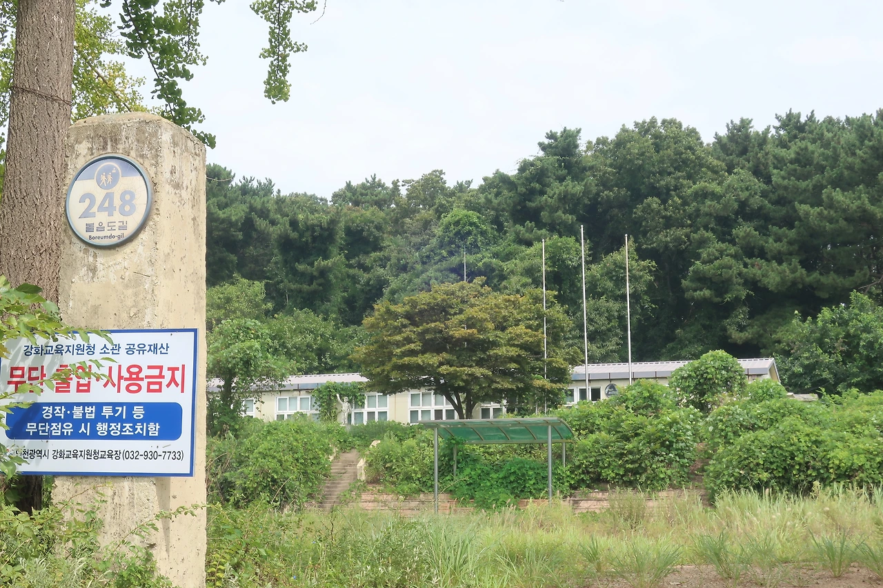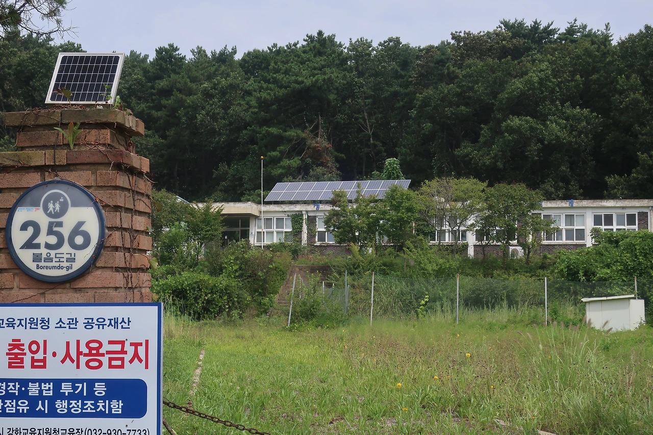 마을 중심부로 나오는 길옆으로는 폐교된 상태의 학교 두 곳이 나란히 붙어 있다. 서도초등학교 볼음분교와 중학교 볼음분교다. 초등학교는 1942년, 중학교는 1976년에 개교했지만 2019년 2월에 한꺼번에 폐교되었다. 길에서 만난 60대 중반으로 보이는 동네 어르신의 이야기로는 학생 수가 많을 때는 한 학년에 50명이 넘어 2부제로 수업을 하였다고 한다. “그런 날들이 또 와야 할 텐데요.” 하니 “그런 날이 오겠어?” 하신다. 교문을 활짝 열어 놓은 학교 운동장에는 풀들만 가득하다.