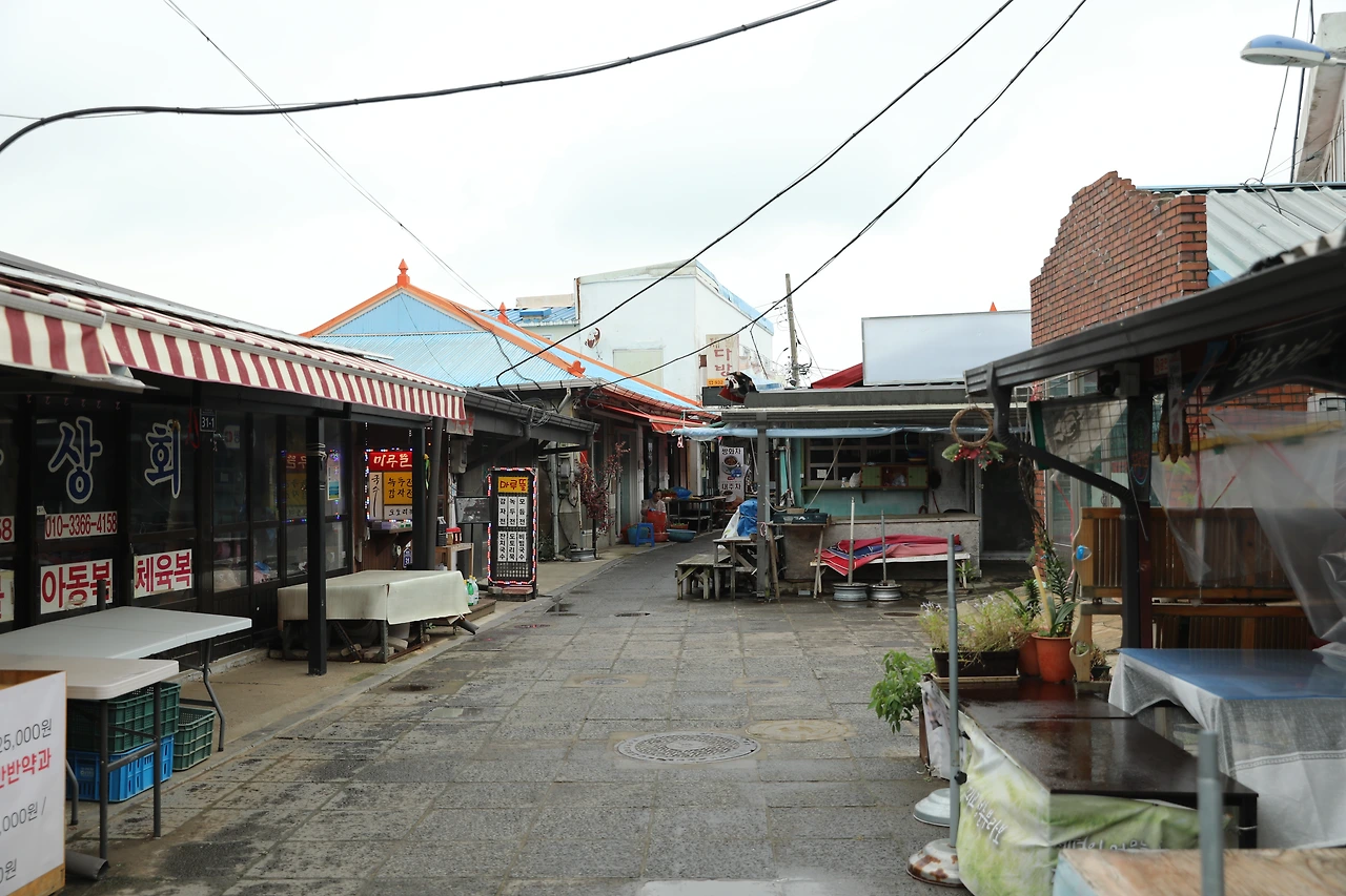 교동도 주민들의 이야기가 흐르는 곳 대룡시장으로 향했다. 대룡시장은 한국전쟁 이후 피난민들이 모여 만들어진 시장이다. 나는 곧 그 이야기 속으로 빠져든다. 작은 소쿠리에 곡물을 파는 상점, 고소한 향내 풍기는 대폿집, 어디서 구했는지 어린 시절 보았던 상표가 붙은 속옷을 파는 상점, 60년대부터 사용했다고 하는 의자와 벽면의 거울이 있는 이발관 등은 어린 시절 동네의 가게들을 그대로 끌어다가 놓은 듯하다. 구태여 거리의 벽에 옛날 그림을 그리지 않아도 이곳을 들르면 호기심 가득한 꼬마가 되는 추억의 골목길이다.