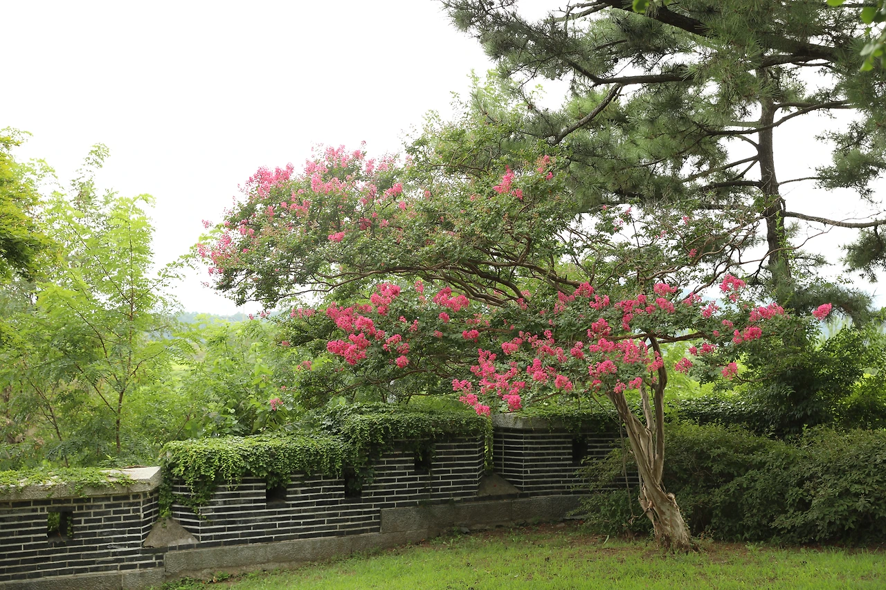 담장 밖을 내다보는 갑곶돈대의 배롱나무