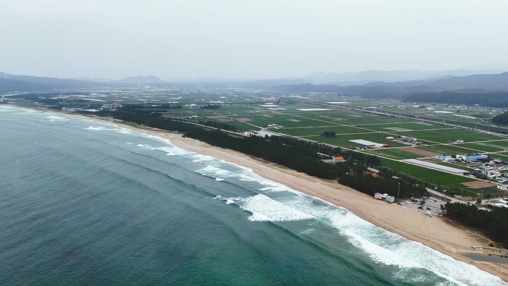 우리의 숙소는 고래불 해변 근처이다. 칠보산 아래 병곡면의 여섯 개 마을에 닿는 8km의 명사 20리 해변이다. 고래불 해변의 남쪽 끝 상대산 위 만어대에서 고래가 뛰어노는 모습을 본 목은 이색 선생께서 "고래불"이라 표현하여 붙여진 이름이다. 해변의 입구 고래 조형물로 된 전망대에 올랐다. 에메랄드빛 바닷속에 고래가 꿈틀거리고 있을지도 모른다. 알록달록 색칠한 방파제 트라이포트 위로 빨간 등대가 서 있고 갈매기와 물보라가 뒤엉켜 난다. 시원하게 곡선을 그린 모래사장 위로 파도가 오르고 솔숲에 저녁 물안개가 쉬엄쉬엄 피어오른다.