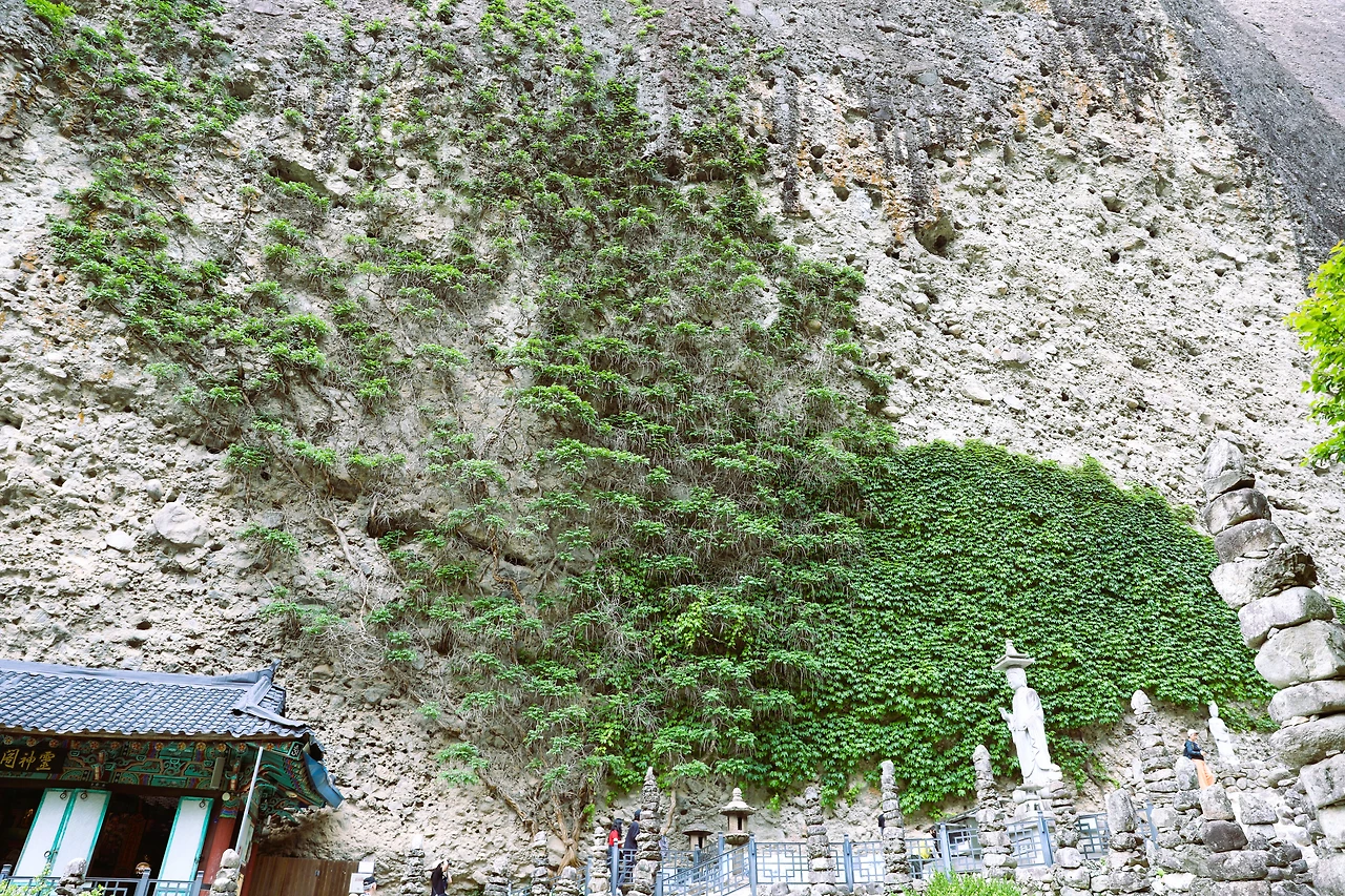 삼만삼천 세계를 의미하듯 탑사를 보호하고 있는 산벽에는 마치 등나무처럼 몇십 미터 길이와 폭으로 능소화나무가 자라고 있다. 자세히 보니 이 나무는 뿌리가 하나다. 신기한 것이 한두 곳이 아닌 마이산 탑사다.