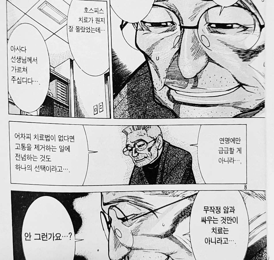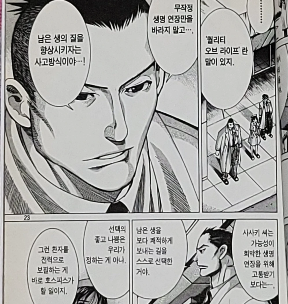 위는 만화 '의룡'의 한 장면이다. 오랜만에 책장에서 꺼내 보던 중 이번 글과 같은 주제의 에피소드가 나와 소개해본다. 인간은 태어나고, 성장하며, 끝으로 죽음을 맞이한다. 죽음은 우리 모두에게 피할 수 없는 현실이고 여전히 두려운 존재지만, 어떻게 그 순간을 마주할지는 우리의 선택에 달려 있다. 죽음의 존엄성과 삶의 연장 사이에서 현대 사회는 여전히 많은 논쟁과 도전을 겪고 있다. 죽음과 삶의 최전선에서 고군분투하는 호스피스가 최선의 선택을 제시하는 담론이 되지 않을까 싶다. 마지막으로 시슬리 손서스의 말을 인용하며 이 글을 마무리한다.