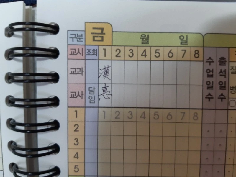 그때부터였을까요. 출석부에 과목이랑 제 이름 한자를 또박또박 쓰고 싶었던 꿈이. 작은 학교 교무보조원일 때 선생님들이 출석부를 잊으시면 반에 갖다 드리곤 했습니다. 그러면서 꿈이 더 커졌습니다.