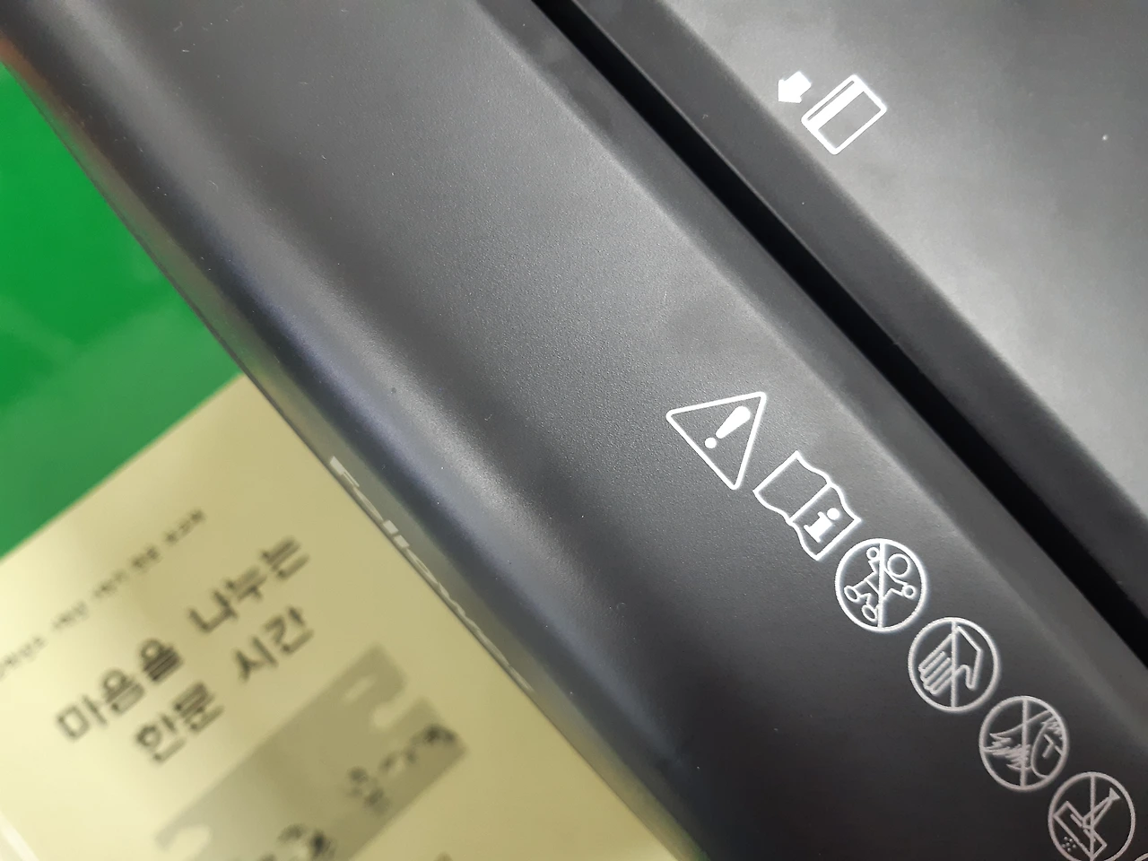 "세단기에 종이 넣으니 시원한 사람?"