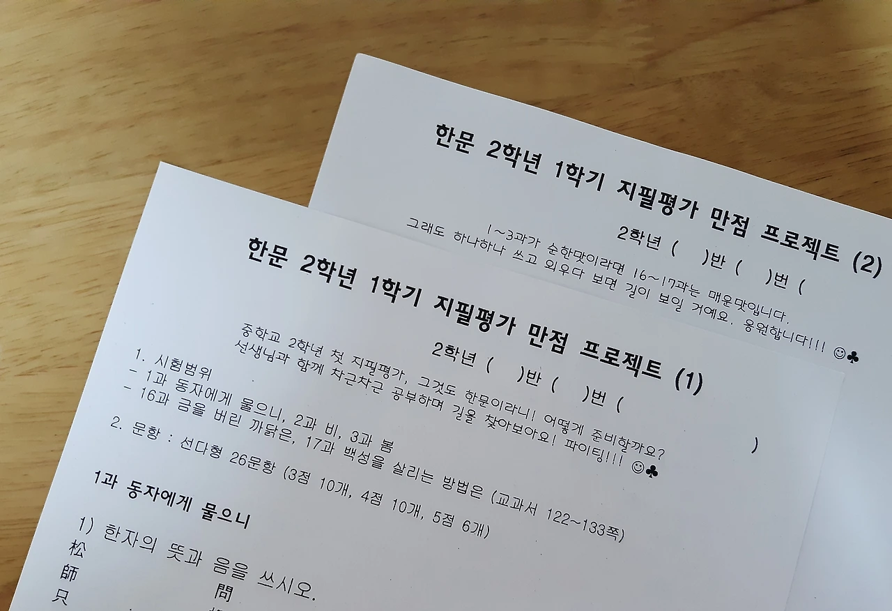 * 출제하는 과정과 결과가 저에게는 제자들에게 주는 선물이기를, 학생들에게는 배움의 기쁨과 의미를 찾아가는 여정이기를 바랍니다. 아울러 중학교 첫 지필평가 앞둔 아이들을 응원합니다.