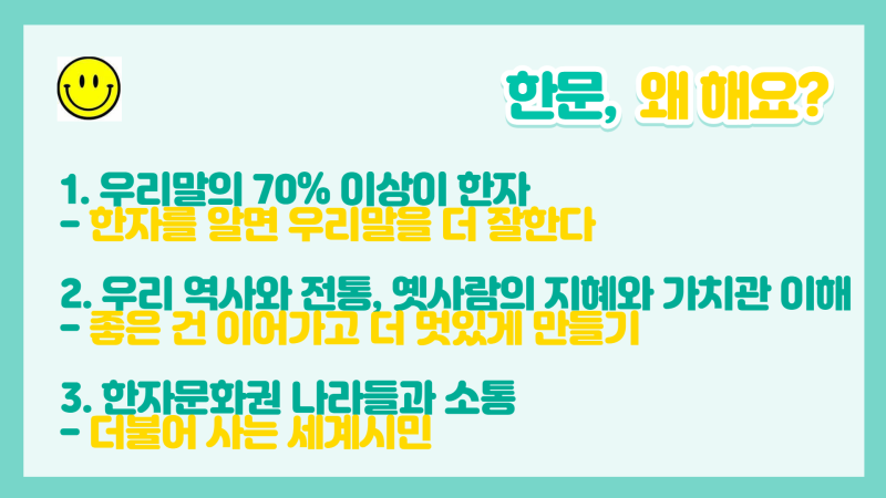 "한문 왜 해요? 선배들이 자주 묻던 말입니다. 여러분 생각은 어떠세요?"