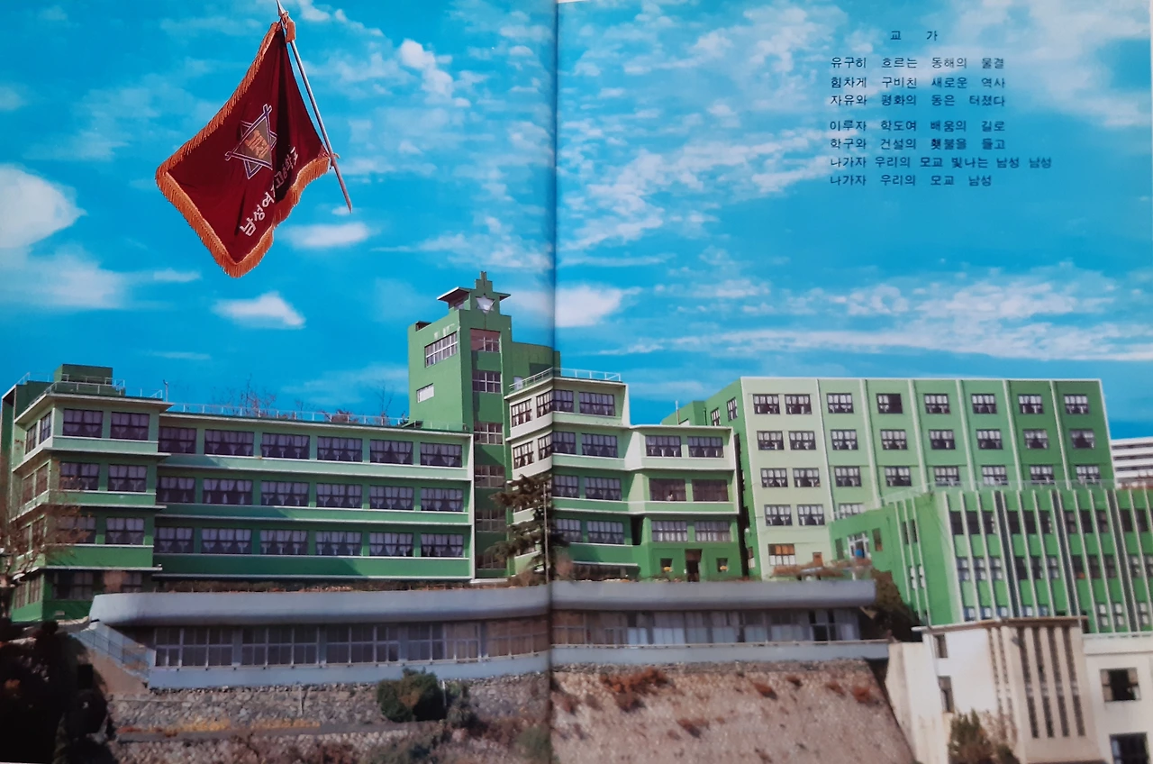 굴다리 지나 운동장. 몇 년 전만 해도 형광청록, 상아색이던 건물이 희고 붉고 파랗습니다. 무용실 있던 곳은 급식실이 되었고 고2 때 고사성어 쓰던 게시판은 역사 저편으로 사라진 듯합니다. 그래도 학교 너머 보이는 용두산공원과 넓고 아득한 바다 앞에서 잠시 열여덟, 열아홉 초록 교복 입던 나날로 돌아갔습니다. 바닷바람 맞으며 어깨 펴고 친구와 인증샷을 찍었습니다. 어린 날과는 또 다른 설렘으로.
