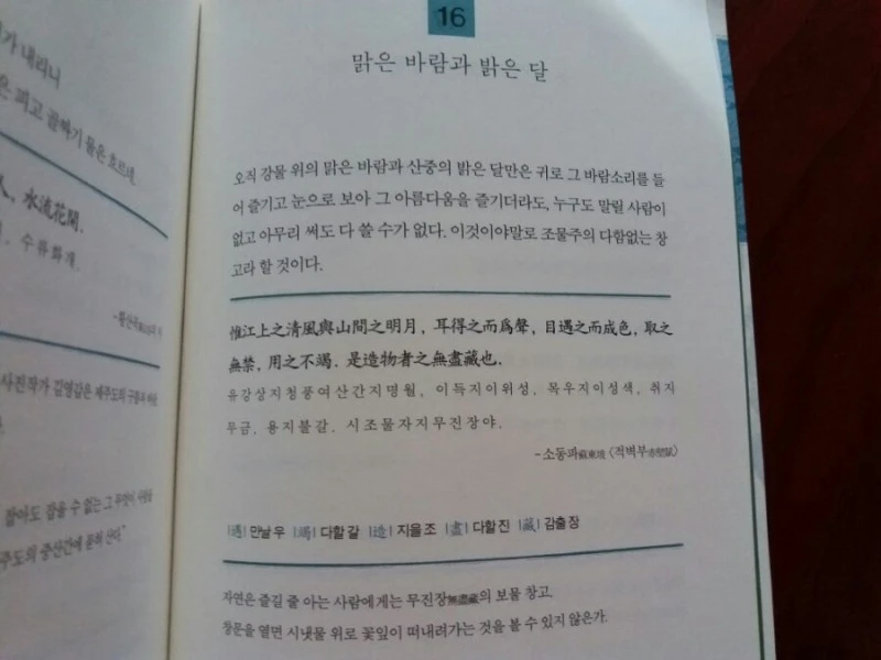 고1 때 EBS 교양한문에 푹 빠졌습니다. 김학주 선생님이 강의하셨는데 교재가 없어, 비디오로 녹화하고 다시 들으며 본문과 해설을 공책에 옮겼습니다. 다음 해 강사가 이명학 선생님으로 바뀌면서 처음으로 교재가 나왔습니다. 문우당서점에서 따끈따끈한 책 보고 얼마나 반갑던지! 여러 번 이사하다 공책과 교재가 없어져 아쉽지만, 3년 동안 차곡차곡 새긴 글은 학교 한문 교과서와 함께 십대 후반을 밝히는 빛이 되었습니다.