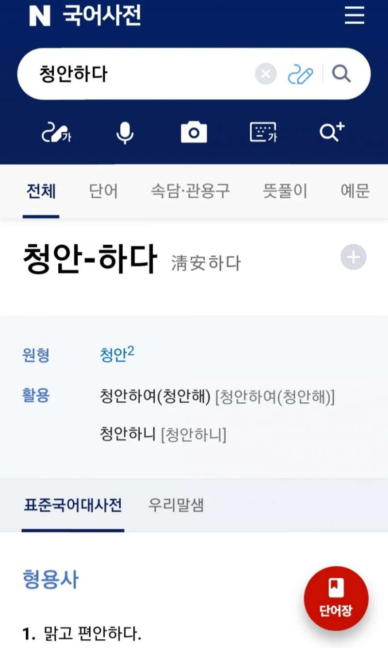 작년에 존경하는 선생님께 '청안하다'는 말을 처음 들었습니다. 찾아보니 '淸安'. 맑고 편안하단 뜻입니다. 종이책 대신 스마트폰으로 찾았지만 낯선 말을 알아가는 기쁨은 같습니다. 낱말 뜻 읽으니 글에 실린 맑은 바람이 더 따스합니다. 모처럼 참 좋은 공부를 했습니다.