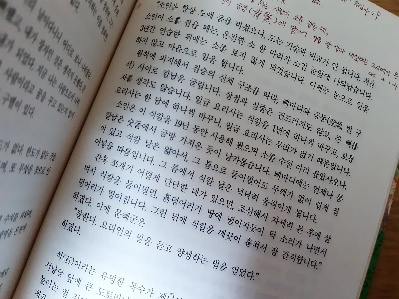 29년 전 2월, 용돈 모아 『재미있는 고전여행』을 샀습니다. 『열자』와 『장자』에 낯선 글이 많았는데, 특히 문혜군의 요리인 이야기를 인상깊게 읽었습니다. 소를 잡아 칼로 자르는 소리가 탁탁 들어맞고, 뼈마디 사이 빈 틈 따라 칼날을 움직여 19년간 쓴 식칼이 숫돌에 금방 간 듯 날카롭단 이야기는 읽고 또 읽어도 신기했습니다.
