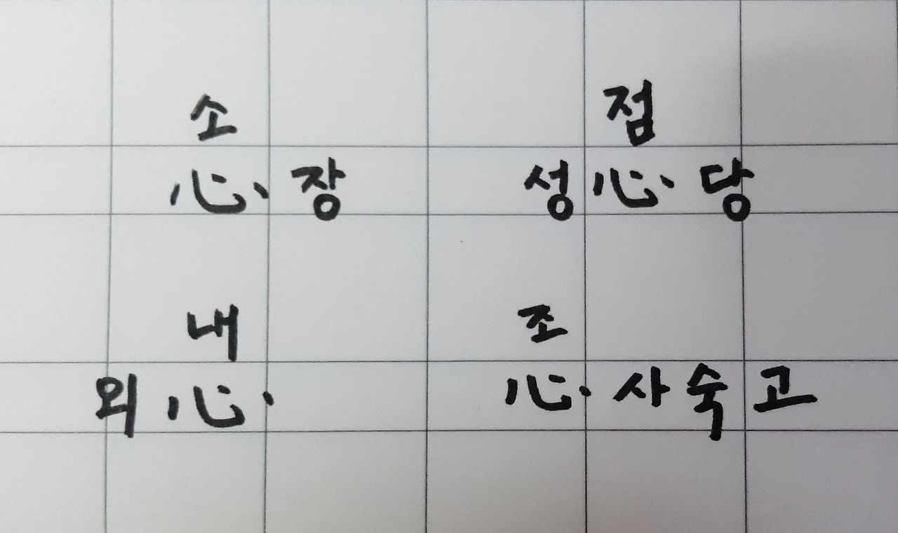 다음날 다른 반, "마음 심 들어간 말 뭐가 있을까요?"
