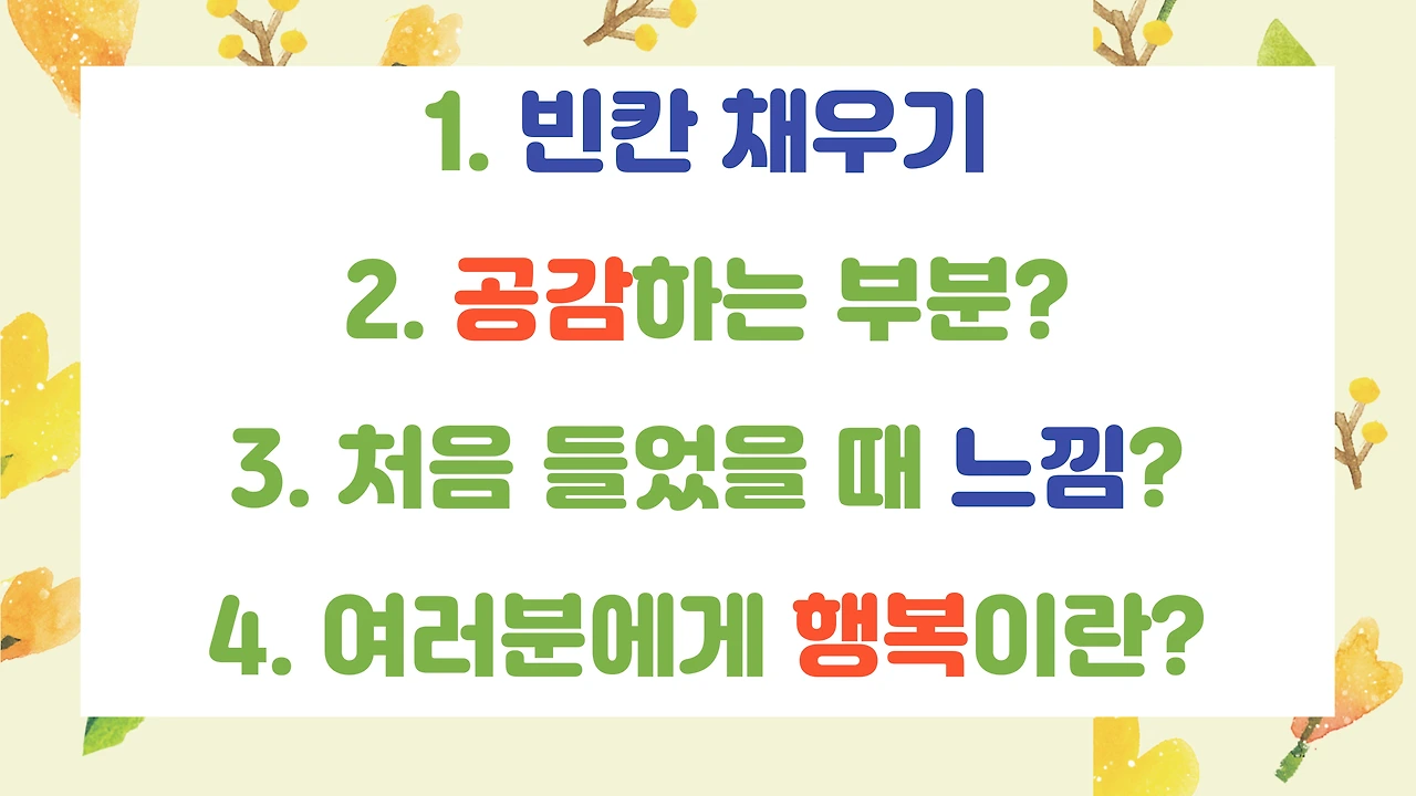 "혹시 빈칸 다 못 채운 사람 있으면 다시 짚어 볼까요?"