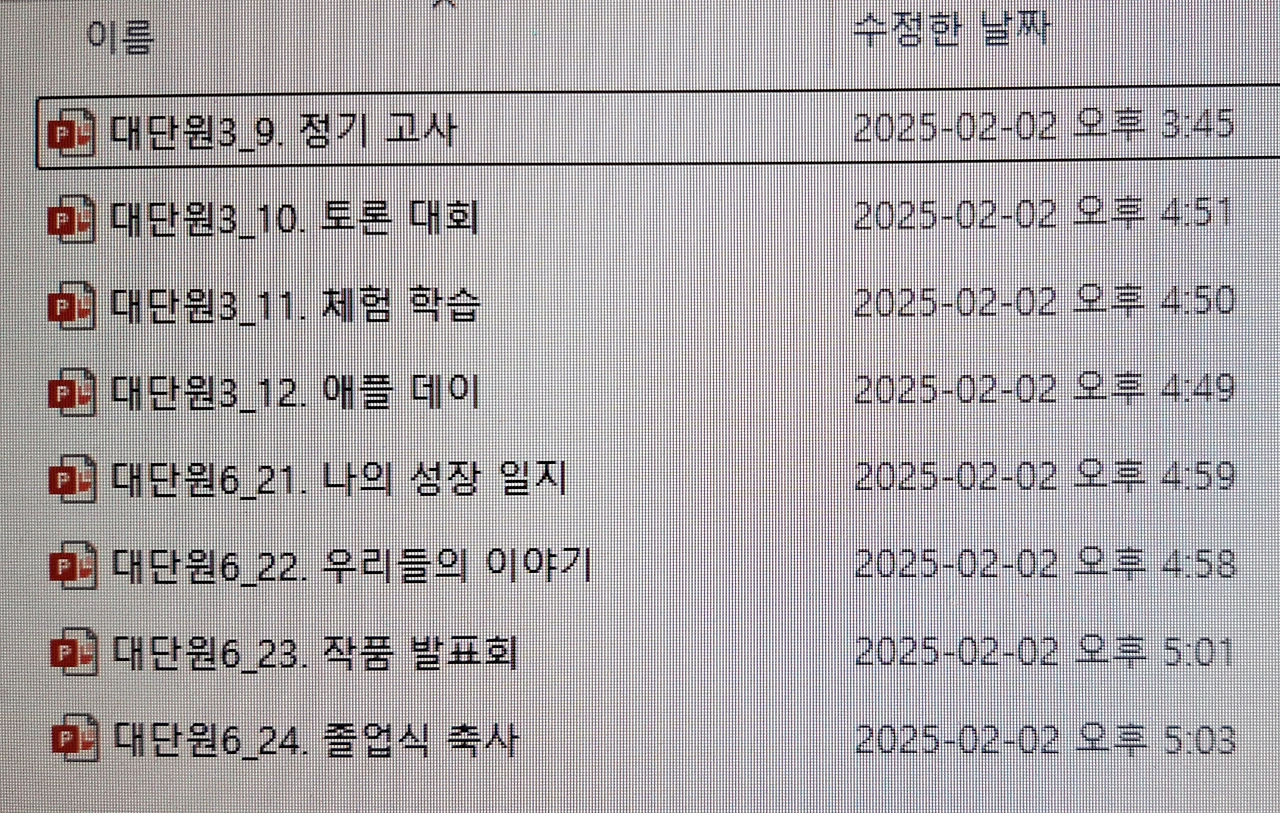 ㅈ선생님과 ㅎ선생님 파일을 참고하면서 첫 단원 수정본을 완성했습니다. 애니메이션 효과까지 주니 뿌듯뿌듯!