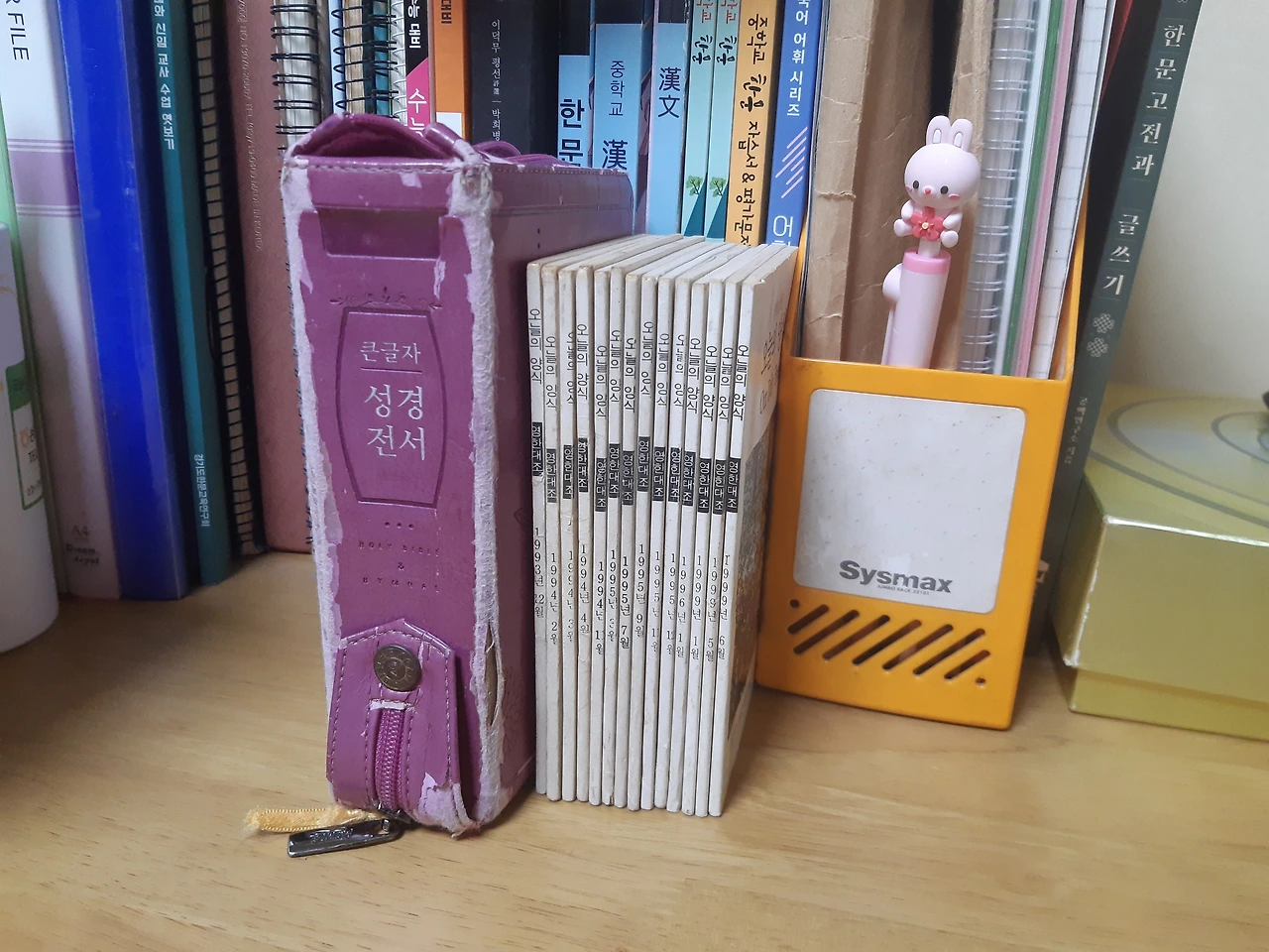 선생님께서 처음 『오늘의 양식』을 주신 건 1993년 12월 첫날이었습니다. 10월부터 우리 반 중간 담임이셨던 선생님은 <하늘 이야기>처럼 좋은 글이 담긴 소식지를 반에 종종 갖다 놓으셨습니다. 그런 선생님께 『오늘의 양식』이라니! 영어 원문과 한글 번역이 나란히 실린 묵상집을 읽고 또 읽었습니다. 고2, 고3 때도 종종 『오늘의 양식』을 받았습니다.