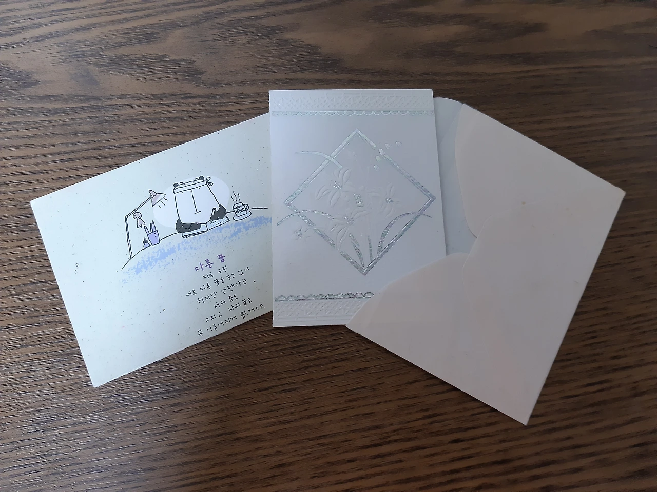 아주 오랜 카드 두 장. 하나는 수능 전날, 하나는 자전과 함께 받았습니다.