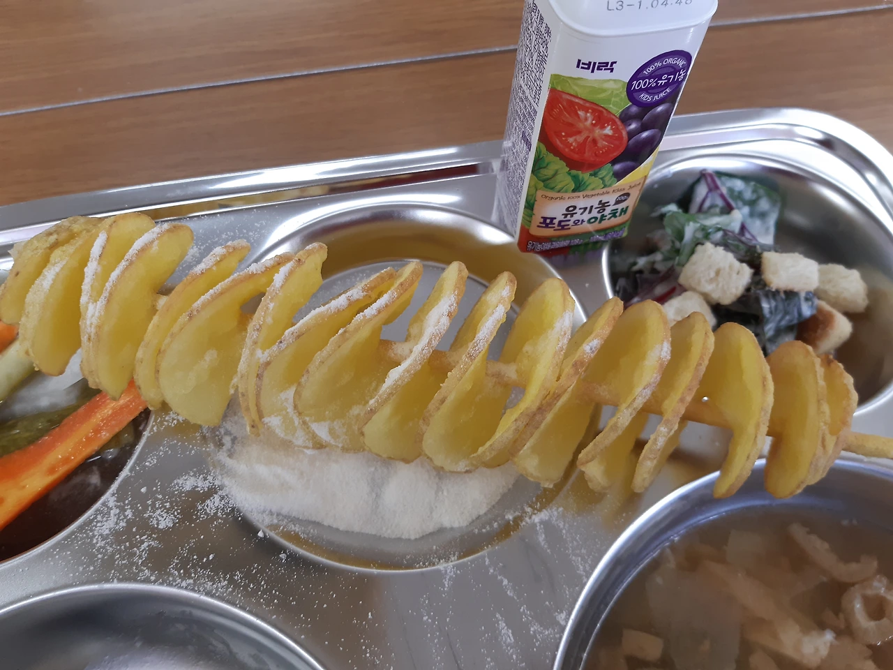 딸기치즈크로플, 로제떡볶이, 완자전 & 깻잎전, 회오리감자입니다. 어제 카프레제는 못 찍어서 아쉬워요. * 수업 때 나눈 영상입니다.