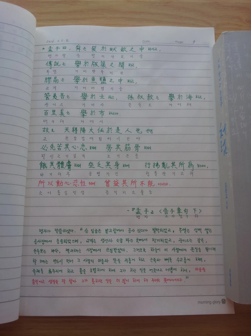너무 밝지 않고 마냥 어둡지도 않은, 그윽하고 따스한 별빛을 꿈꾸는 저에게 맹자의 천강대임론(天降大任論)은 또 다른 별입니다. "그러므로 하늘이 이 사람에게 큰 임무를 내려주려 할 때는 반드시 먼저 그의 마음과 뜻을 괴롭히고"로 시작되는 글은 읽을 때마다 마음이 뜁니다.