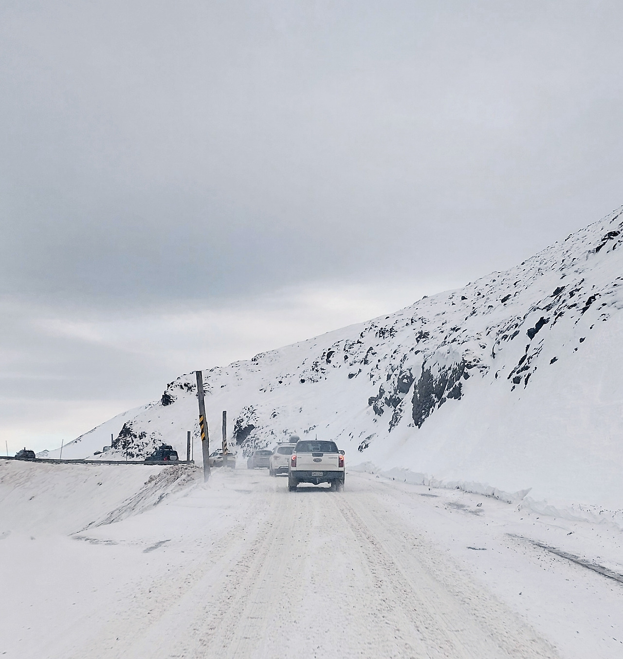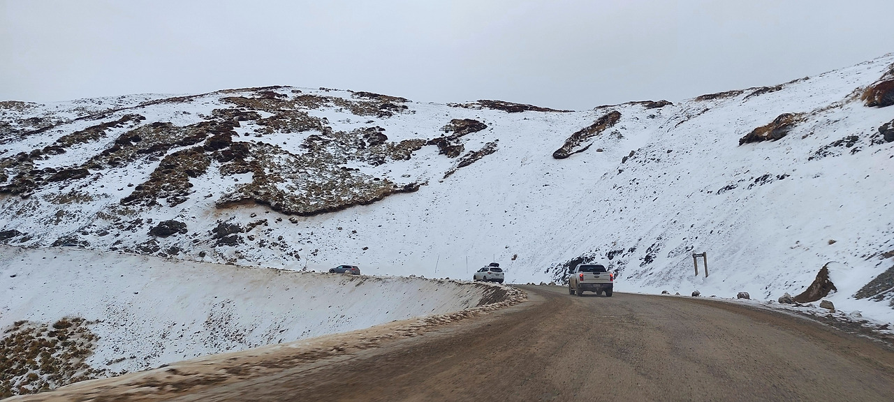 물론 길이 넓지 않다. 혹시라도 반대편에서 차가 오면 옆으로 비켜주다가 가드레일이 없기에 절벽으로 떨어질 수도 있다. 다행히도 새벽이라 위에서 내려오는 차는 없었다. 끊임없이 오르다 보면 눈으로 덮인 길이 나오기 시작. 거기서부터 2륜구동차는 무조건 체인을 끼워야 한다.