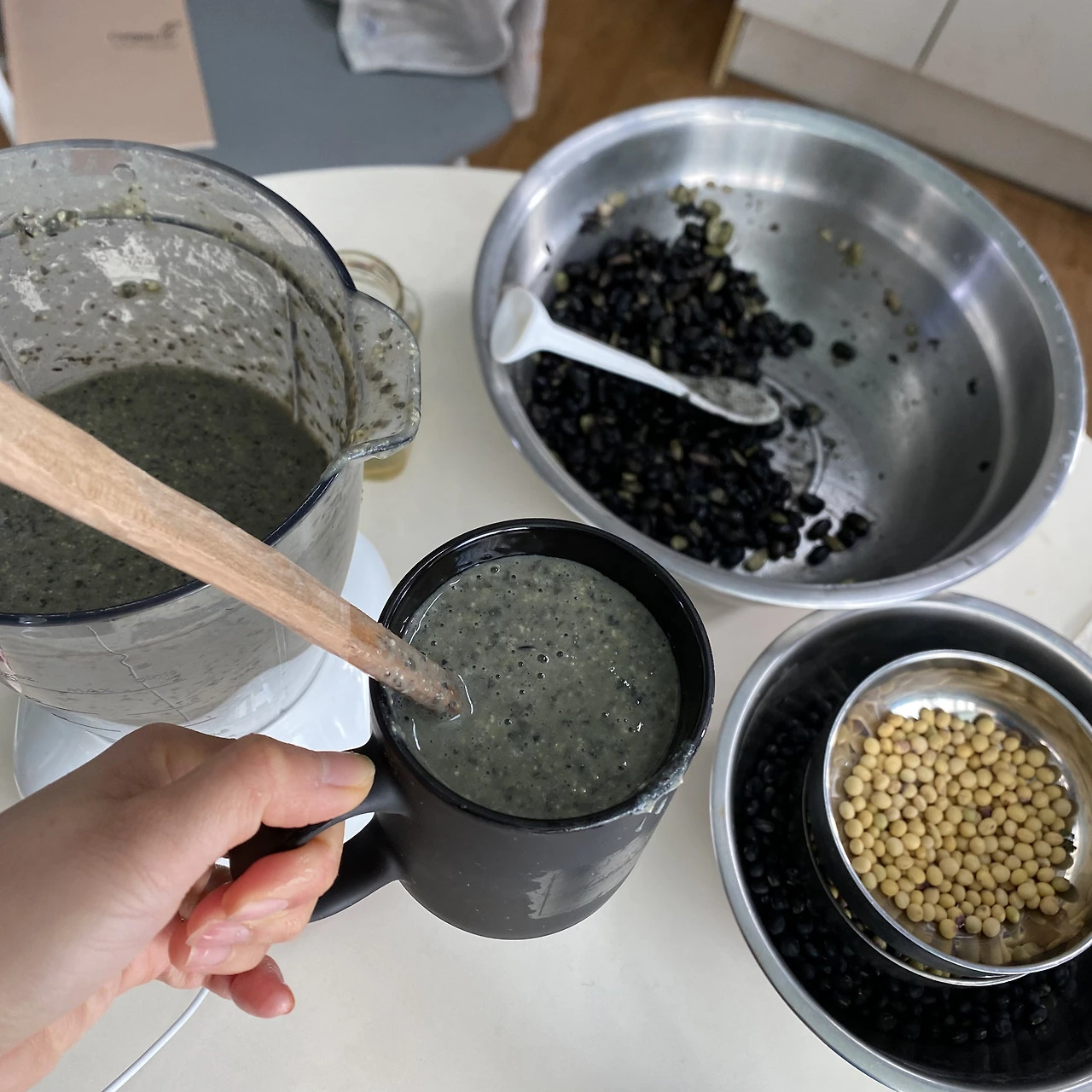 꼬소하면서도 비릿한 콩 삶는 냄새. 압력밥솥에서는 서리태가 열기를 가득 머금어 부풀고 있다. 수분을 머금다 못해 톡 터진 한쪽 옆구리에선 연둣빛 속살이 비친다. 치지직 치직, 압력밥솥 내부에서 나는 소리가 몇 차례 반복되더니 거대한 증기가 뿜어져 나온다. 고소한 향의 증기는 천장에 닿아 벽을 타고 내려온다. 이내 사라진다. 이 스팀에 얼굴을 맡겨 스팀 마사지를 하고 싶다는 생각이 뜬금없이 든다. 왠지 단백질 가득한 검은콩 훈기라면 피부에도 좋을 것 같다. 직접 심고 얻어낸 콩의 훈기라는 생각이 들자, 그 소중함이 한층 더 마음에 와닿는다.