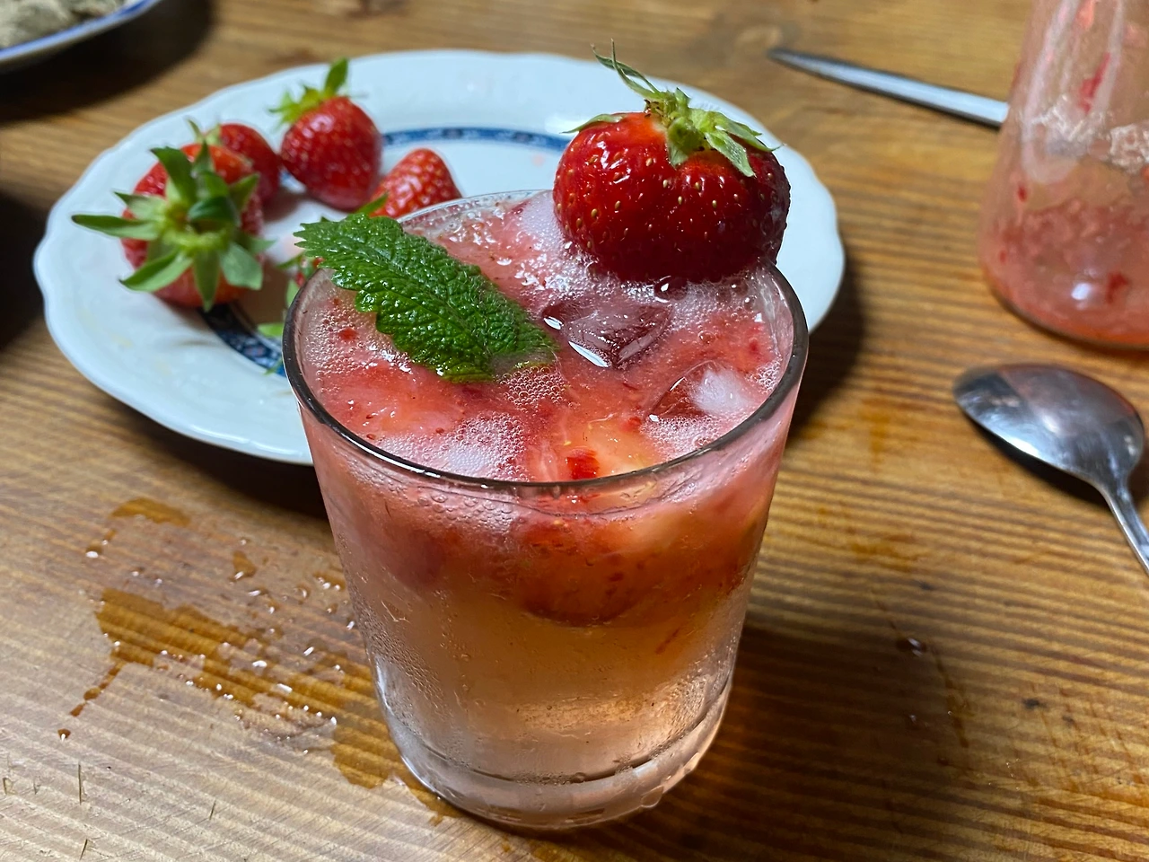 토마토 지지대도 만들고 토마토, 상추, 대파 모종을 심었어요. 지지대를 마저 만들려고 했는데 딸기 소식이 전해져왔어요. "옆 마을 이장님이 팔고 남은 딸기 따가라고 하네요." 그래서 갑자기 딸기를 따러 갔어요. 이웃들이 트럭을 타고 내려와 밭에 있는 저를 픽업해 갔어요. 와, 딸기 천국이다!! 분명 딸기를 따기 전에는 배가 고팠는데 딸기하우스 가자마자 친환경 딸기를 왕창 따먹은 탓에 배가 부를 정도였어요.